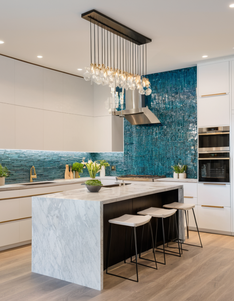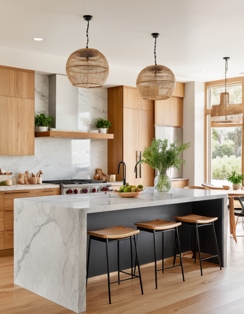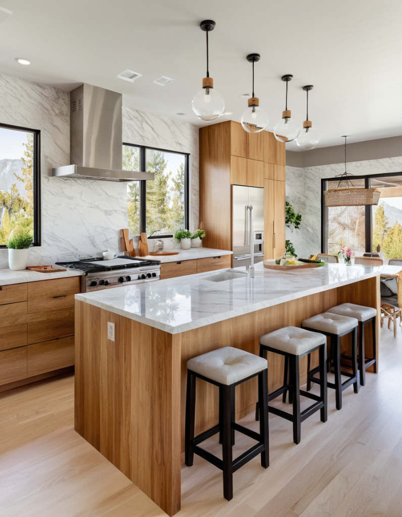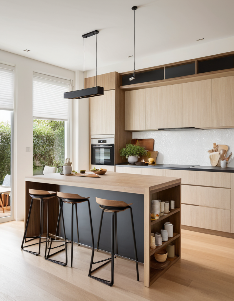 Kitchen islands and breakfast bars not only offer necessary service but also contribute to the socialization aspect of an open kitchen. In 2025, the islands have evolved into more multifunctional and larger units with built-in storage, sinks, and stovetops. A striking waterfall countertop, where the material extends to the sides of the island, gives it a more modern and luxurious feel. For the breakfast bars, you can add seating that can be hidden when not in use and make the space feel clean and open.