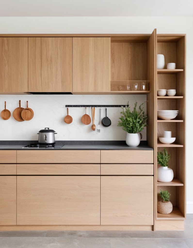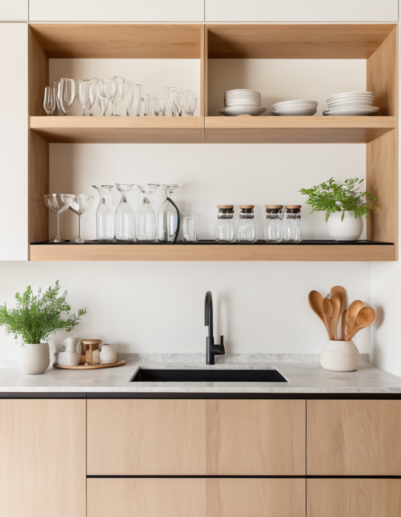 In 2025 the discussion of whether open shelving or traditional cabinets is still on the table. Open shelves are a modern and spacious solution that is making a huge impact on kitchen designs in days to come. The simple design allows easy access to those items, which are most frequently needed in order and art display, mobile iyem’s are placed on it. Nevertheless, the built-in cabinets also approved for locking the chaos away and maintaining the smooth of the room.