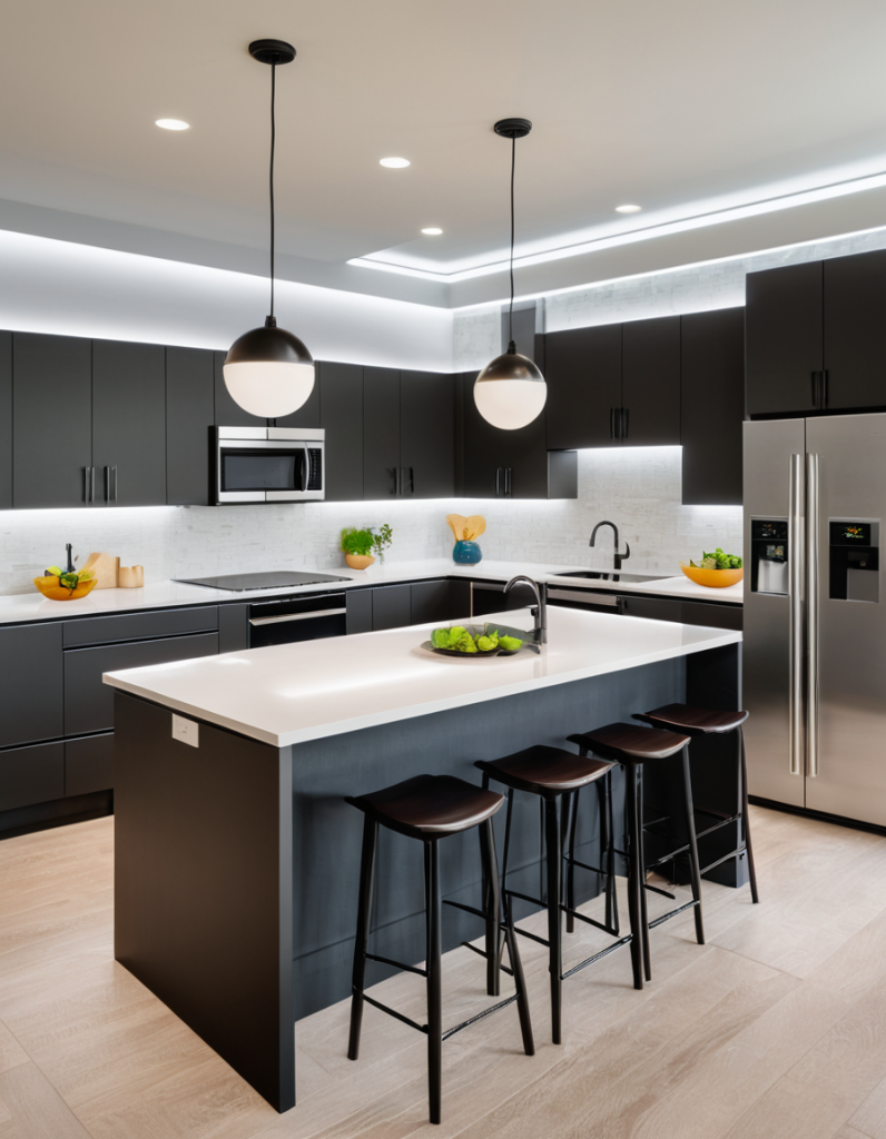 2025 will be the year when the main features of open kitchen trends will be the harmonization of luxury and sustainability. Included are green building programs that promote designs using reclaimed and recycled materials, resources like glass, metal, and cement as well as having intelligent building management systems. Besides the contrast of the color black and white with upbeat blue and the use of both matte and metal accent accompanied by vibrant shades on clothing. Choose the most popular techno solutions like touchless faucets, smart refrigerators, and automated lighting systems to build smart homes that are not only oriented to computers but at the same time secure the comfort of the inhabitants.