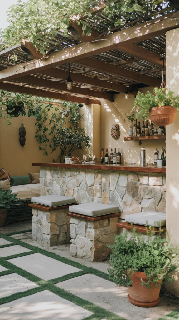 Outdoor Bar Ideas with Pergola Roofs