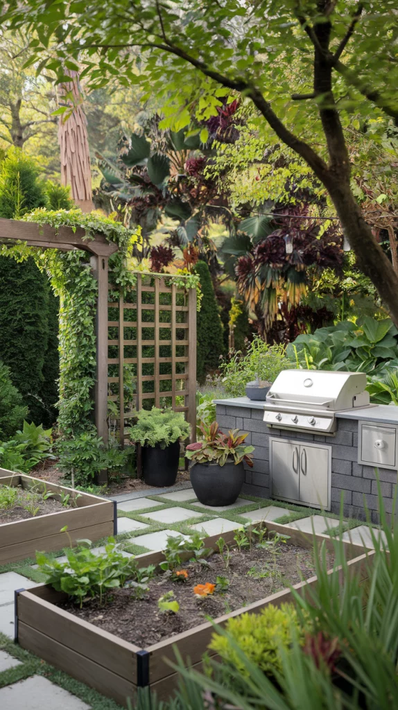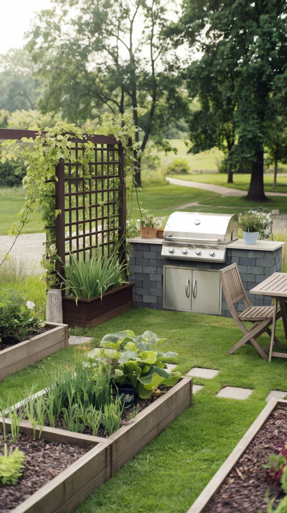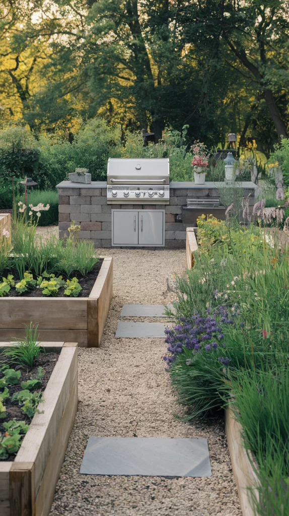 Surrounding your BBQ area with greenery adds charm and helps blend it into the garden. Use raised beds, container plants, or hedges to create a natural border. Climbing vines or vertical gardens can add dimension to the space. Opt for low-maintenance plants or herbs that can double as ingredients for your BBQ dishes.