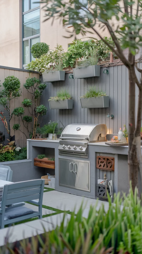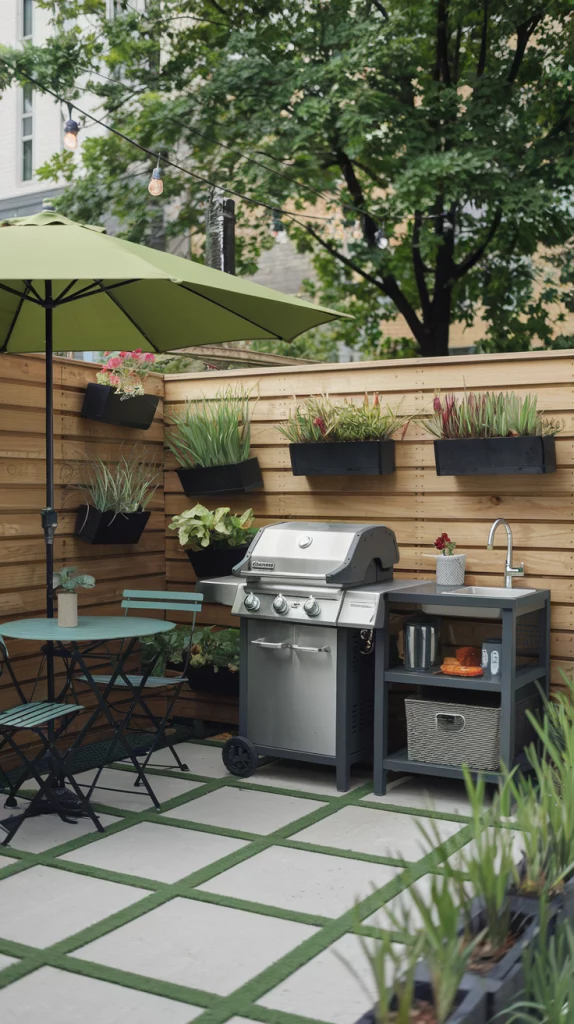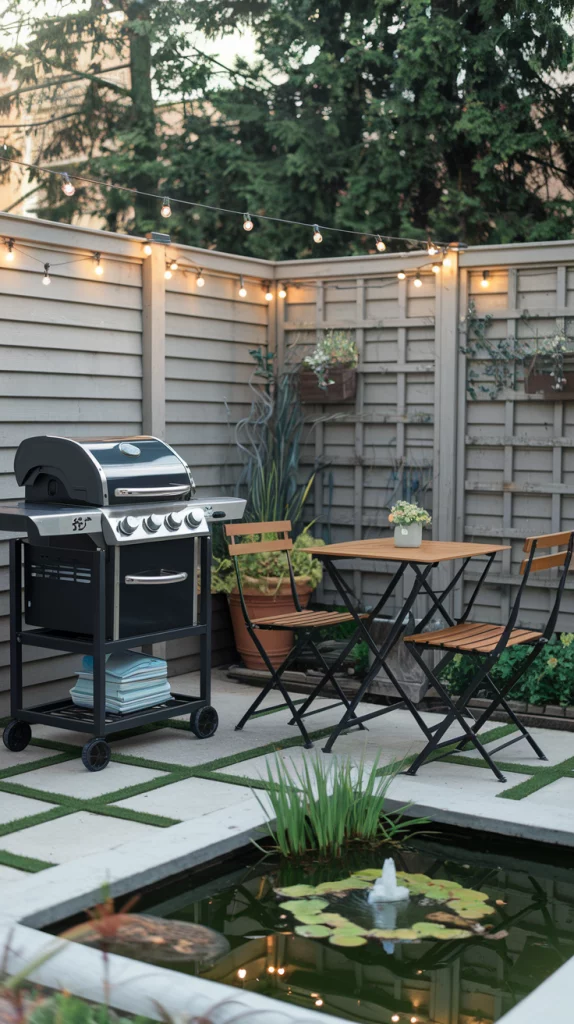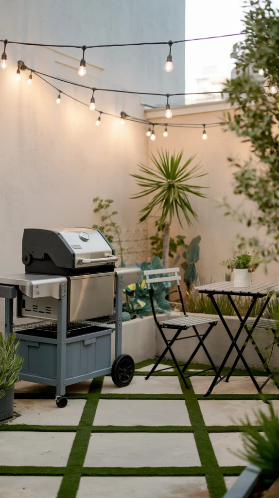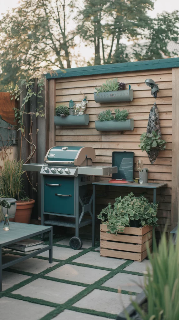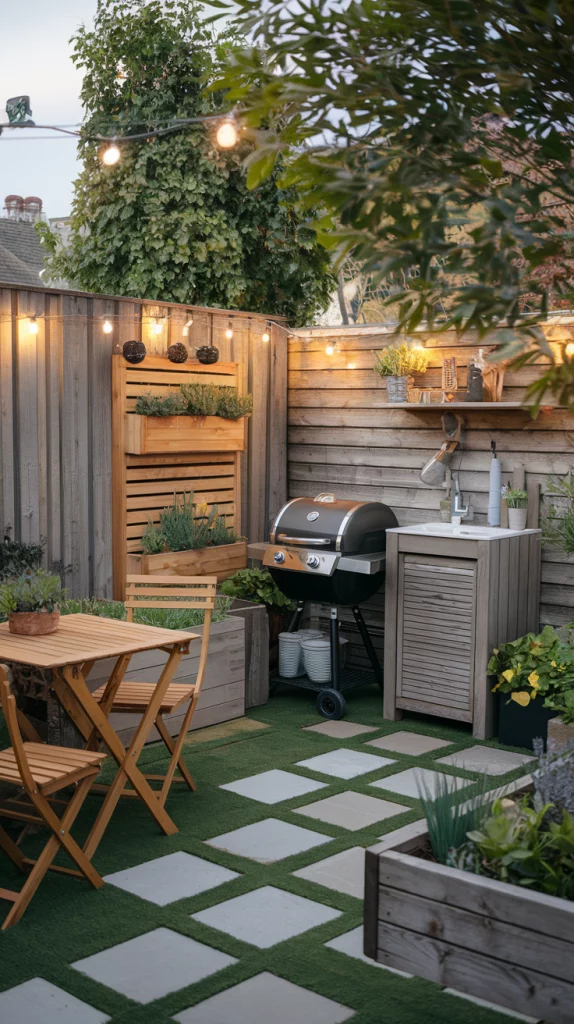 Compact gardens can still have a functional and stylish BBQ area. Choose a portable or foldable grill that saves space. Pair it with a small prep station and use vertical planters or wall-mounted shelves for storage. Opt for foldable furniture to maintain flexibility and illuminate the area with solar-powered lights for an eco-friendly touch.