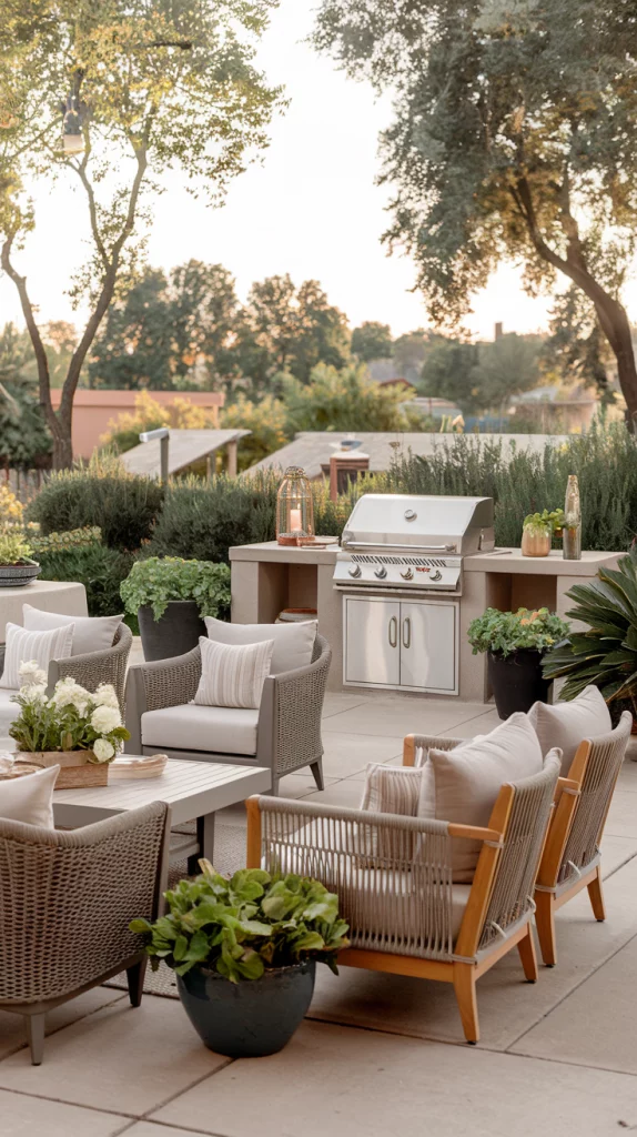 Comfortable seating elevates your BBQ area, transforming it into a welcoming space for guests. Choose weather-resistant materials like wicker, teak, or aluminum for durability. Add cushions in neutral or garden-inspired tones for style and comfort. Arrange seating around the grill or dining area for a cohesive layout that encourages socializing.