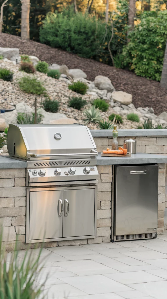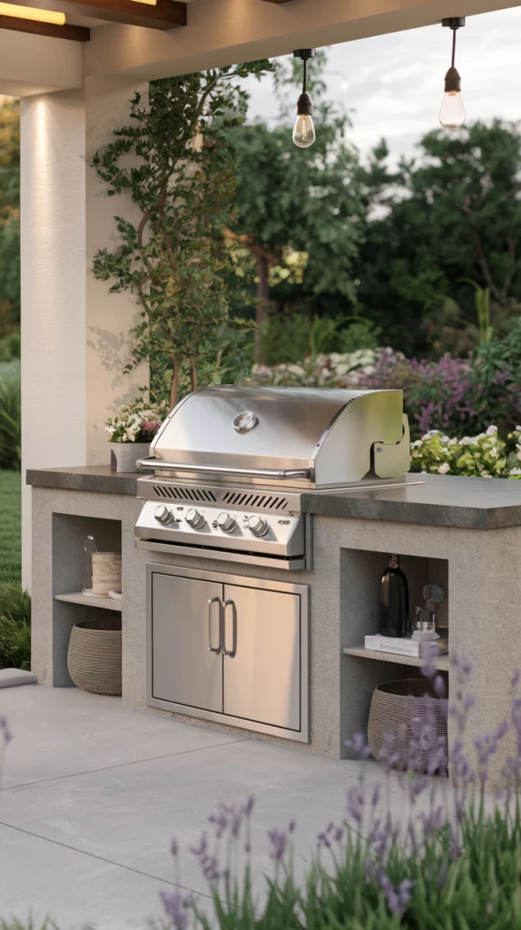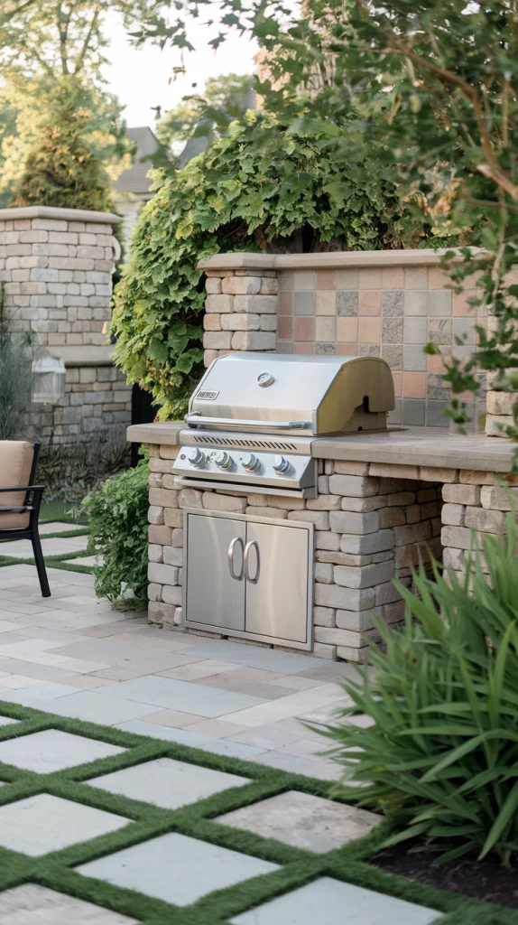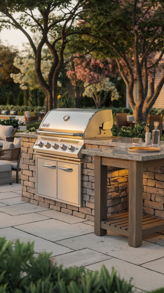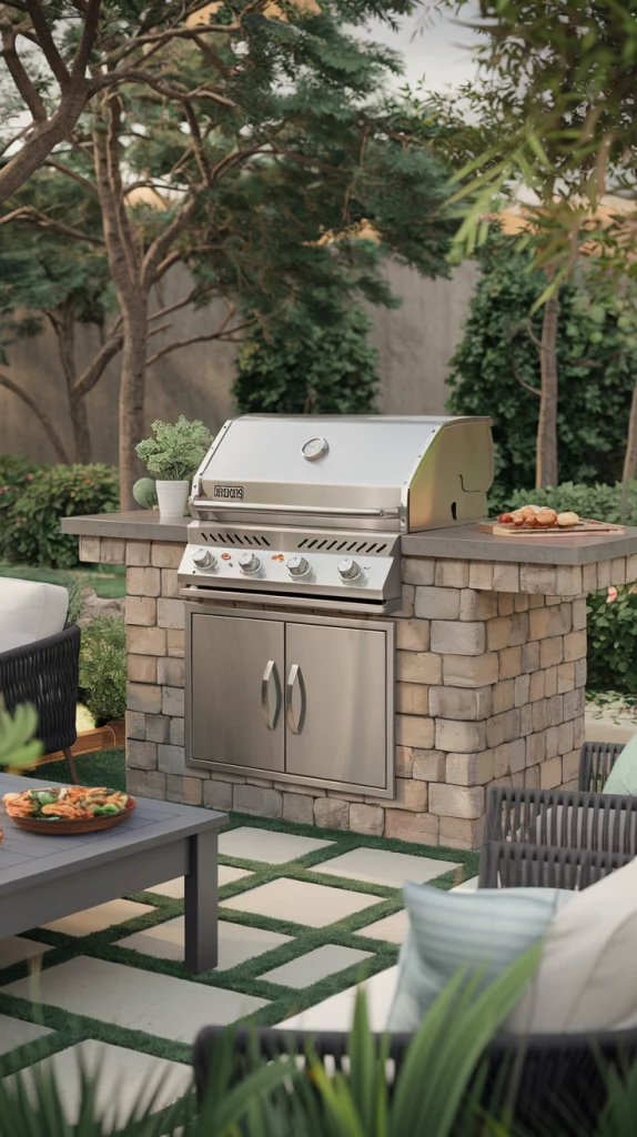 Built-in grills are ideal for larger gardens and add a polished look to your outdoor space. Construct the grill’s housing from materials that complement your garden’s design, such as stone or concrete. A tiled backsplash can add flair while ensuring easy cleaning. Position it within a dedicated cooking zone for an organized layout.