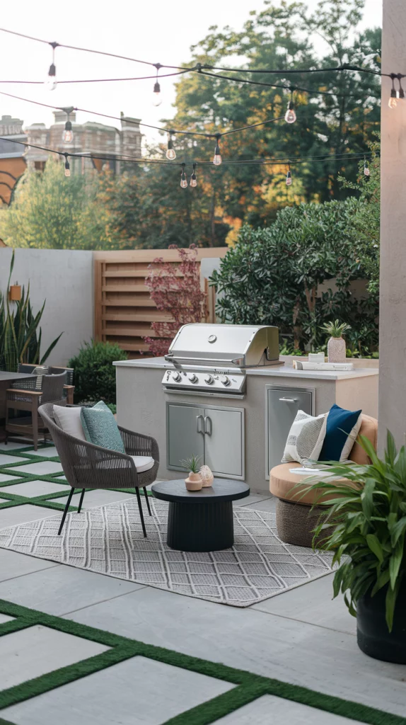 Patios can be effortlessly transformed into functional BBQ spaces. Add a compact grill or a built-in setup to one side of the patio, leaving room for dining or lounging. Use weather-resistant furniture and incorporate an outdoor rug to define the space. String lights or hanging lanterns add ambiance, while potted plants and decorative elements provide a touch of style.