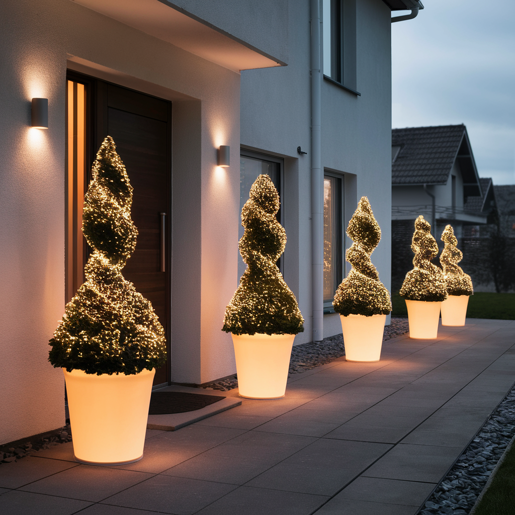 Glowing Christmas Topiaries for a Sculpted Look