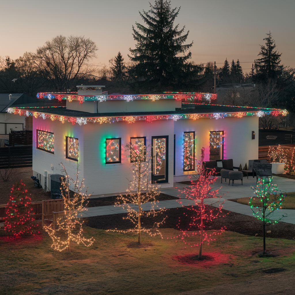 Lights that chase after another create a moving, joyous atmosphere in your outdoor Christmas decorations. These lights create the illusion of motion, as they “chase” each other along the string, making them perfect for outlining your house, decorating your trees, or creating unique patterns on your lawn. Besides outdoor holiday decorating for houses with a modern twist, chasing lights are ideal, offering a dynamic and eye-catching display that will evoke the spirit of the celebration.