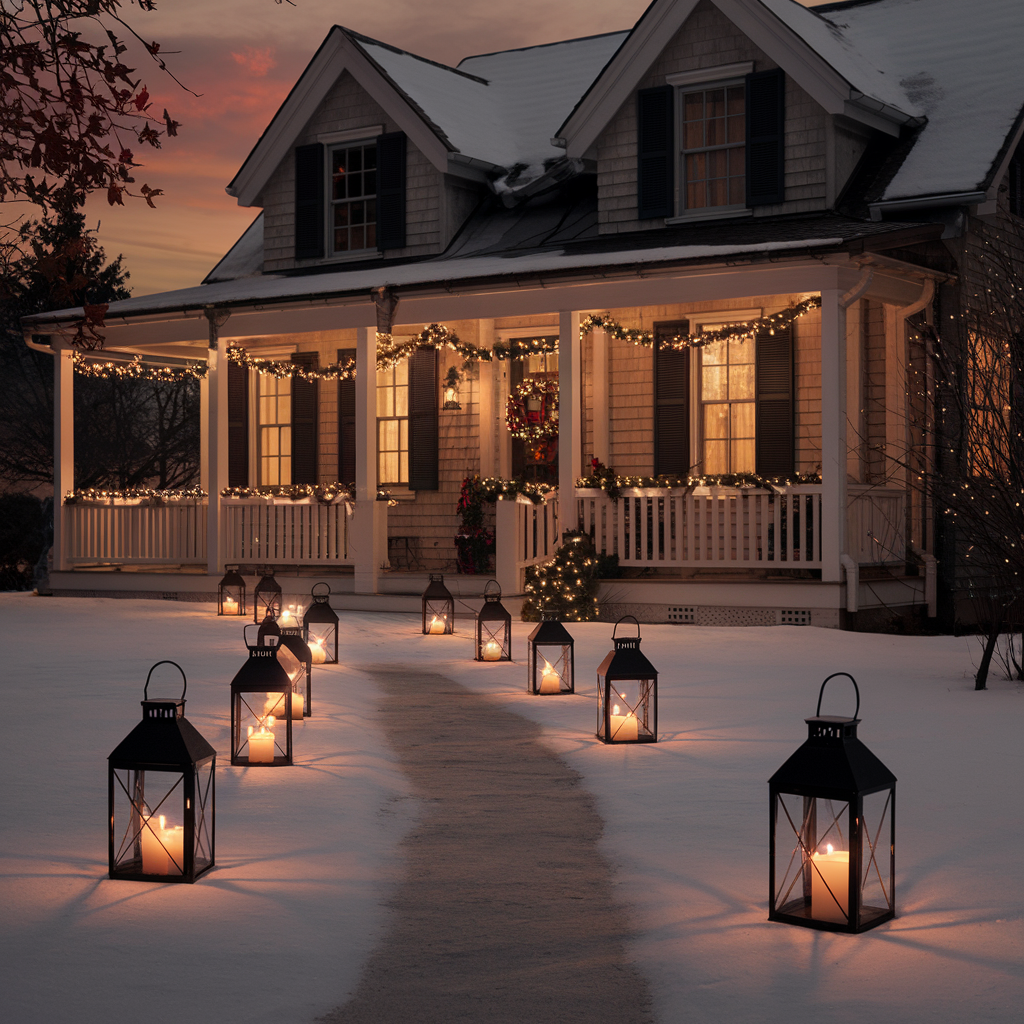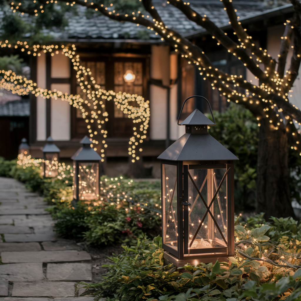 Lanterns with Christmas Lights for a Cozy Ambiance