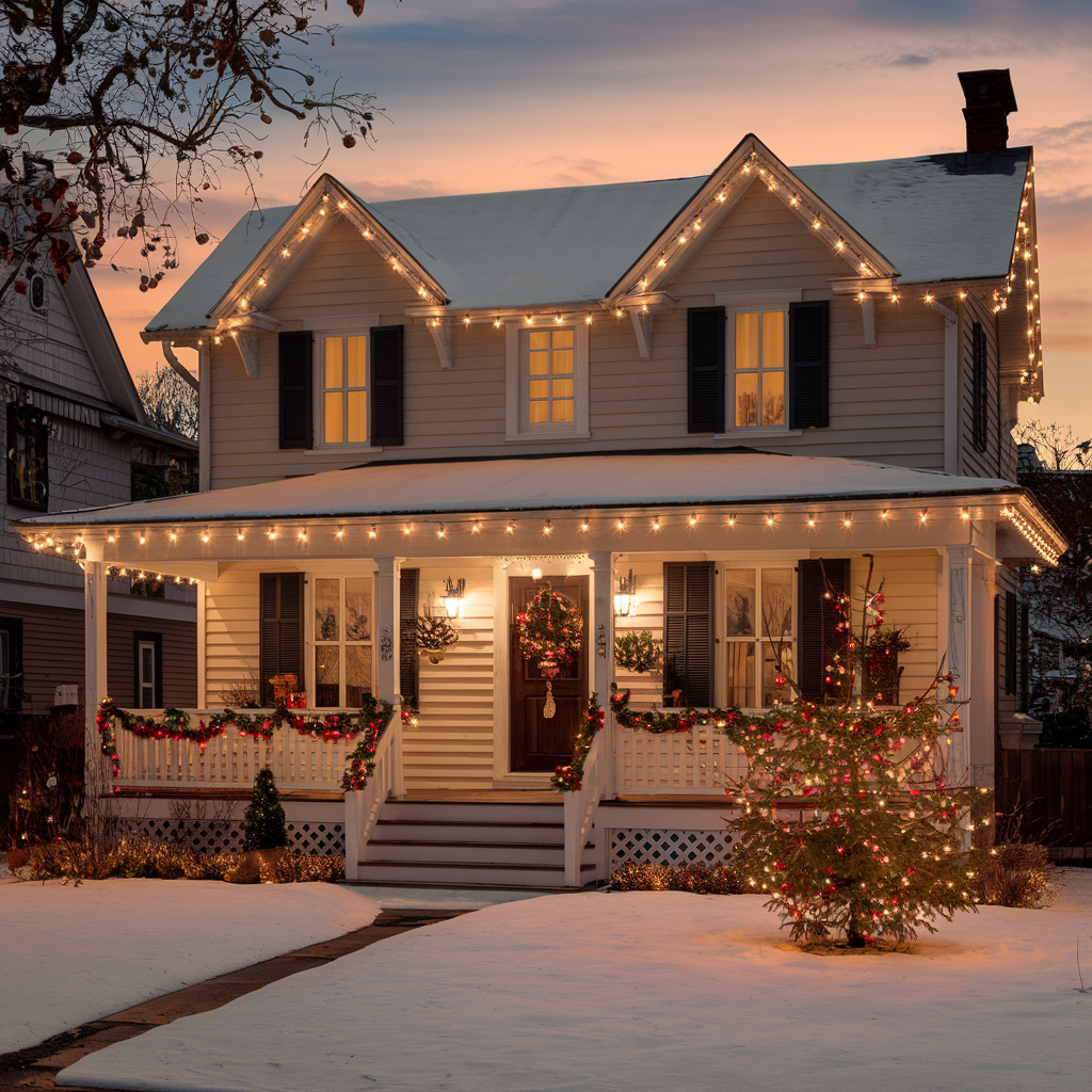 Personalized Christmas lights with different colors are the most common thing you would associate with a festive atmosphere. These bright lights bring a happy and energetic spirit to your outdoor decorations, thus, your home becomes the center of attraction in the neighborhood. No matter if you decide to drape them over your bushes, contour your house, or even infuse your lawn with abstract creations, multicolored lights undoubtedly infuse your holiday with energy, which is just right for houses holiday decorating with a colorful and playful flair.