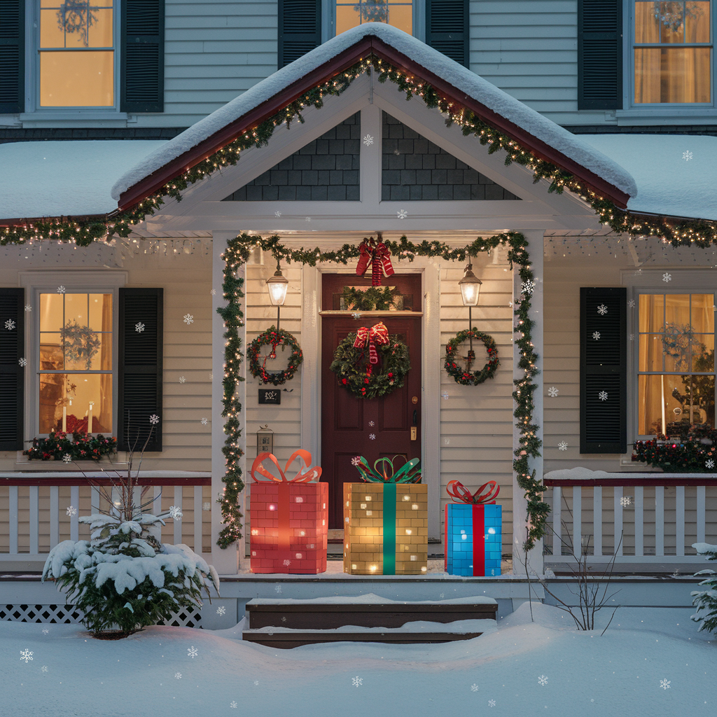 Bring a little fun and excitement to your outdoor decor with lighted Christmas presents. The illuminated decorations look like wrapped gifts and they can be scattered under trees, on porches, or around your yard to create the holiday-themed display. Lighted Christmas presents are ideal for traditional houses or holiday decorating outdoors, they add a sense of whimsy and happiness to your home decor with the fact that it looks like the whole neighborhood is filled with gifts from Santa.