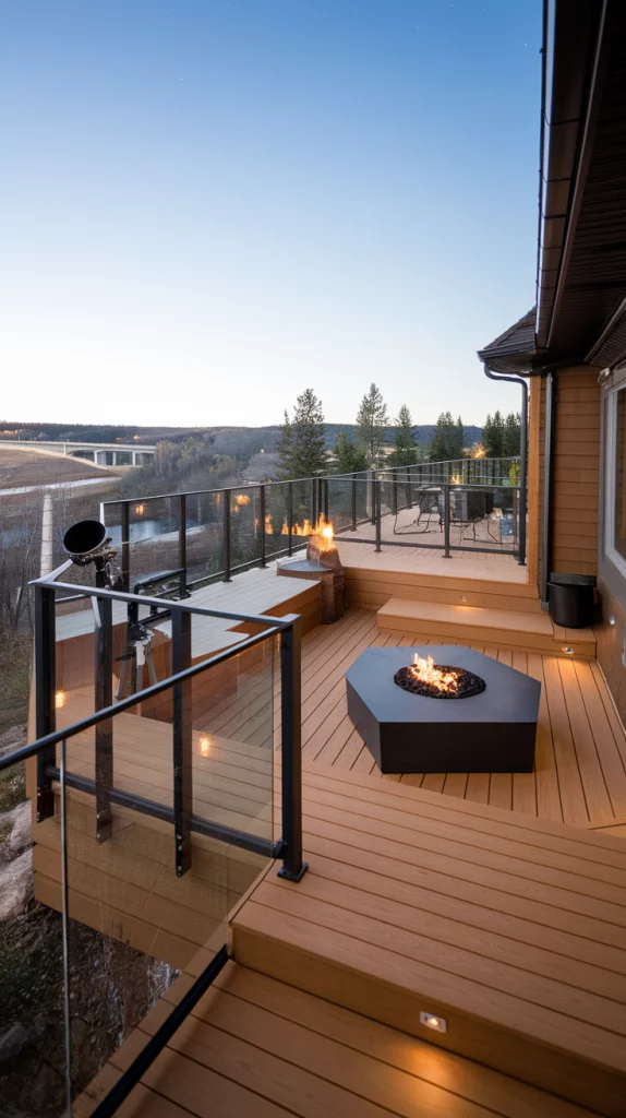 Backyard Deck with a Built-In Fire Pit