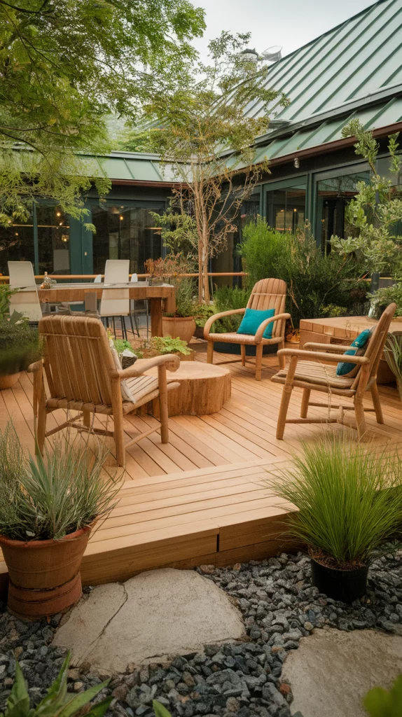For those seeking sustainable decking options, composite decking made from recycled materials, bamboo decking, or reclaimed wood are excellent choices. Solar-powered lighting, rainwater collection systems, and native plants help reduce the environmental footprint. Choose non-toxic finishes and permeable decking to enhance sustainability.