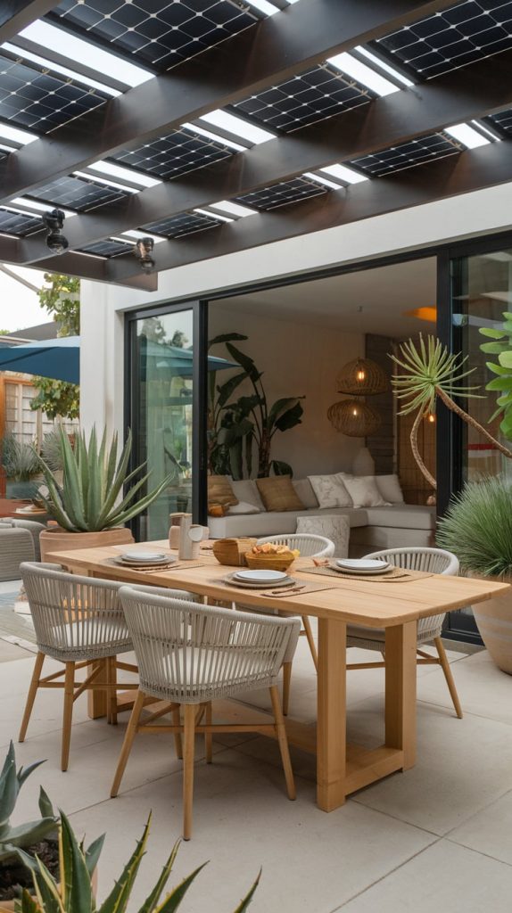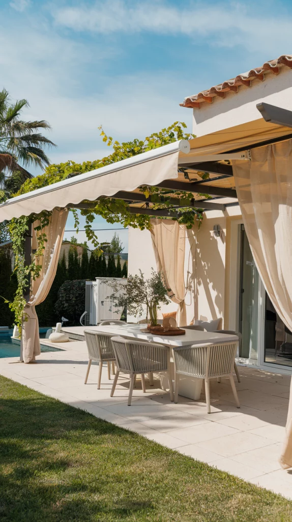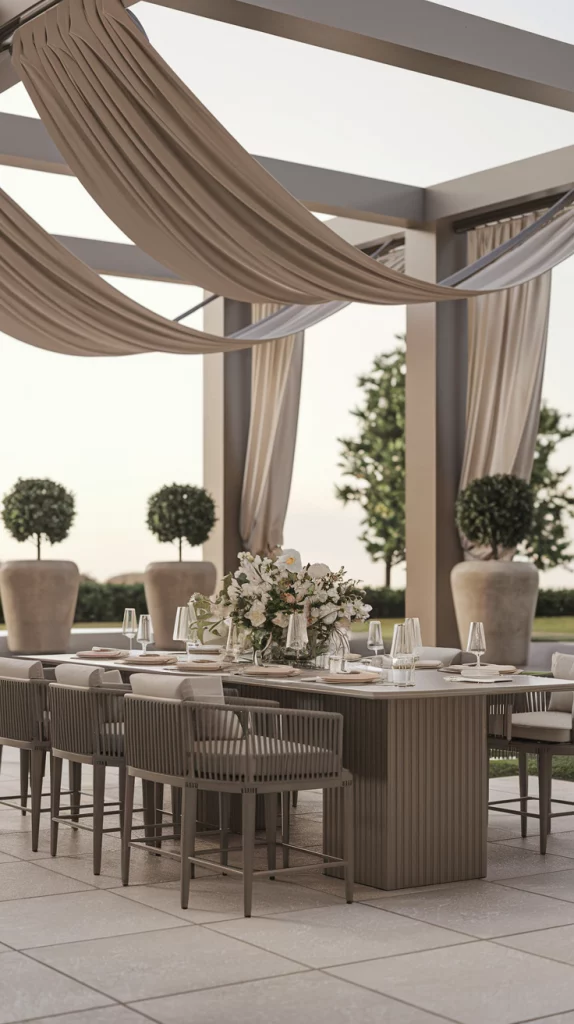 Ensure comfort by adding shade to your outdoor dining area. A retractable awning, umbrella, or pergola covered with vines can provide relief from the sun. For a more stylish approach, consider using outdoor curtains or shade sails that add both functionality and elegance to the space.
