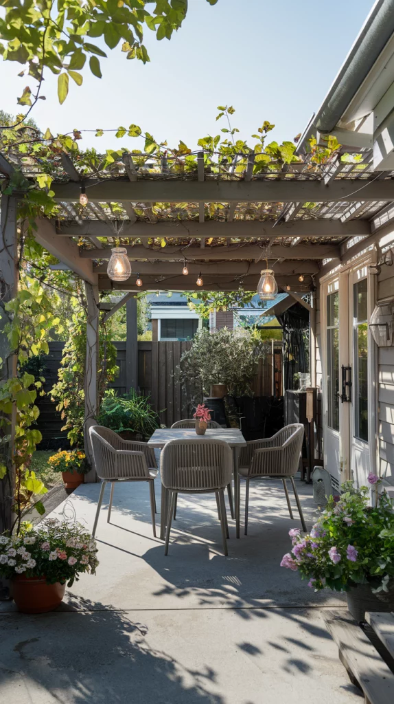 Small spaces can be transformed into functional outdoor dining areas with the right design. Use foldable furniture or a bistro set to save space. Vertical elements, such as hanging planters or shelves, help maximize functionality without cluttering the area. Opt for a round table to create a sense of openness, and use light, neutral tones to make the space appear larger.
