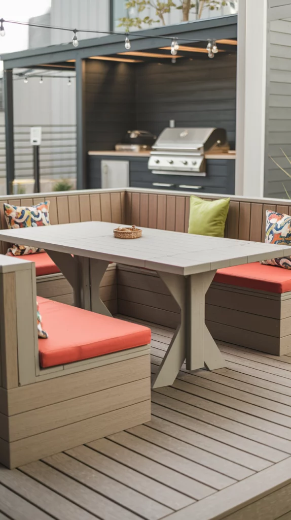 Outdoor Dining Areas with Built-In Benches for Families
