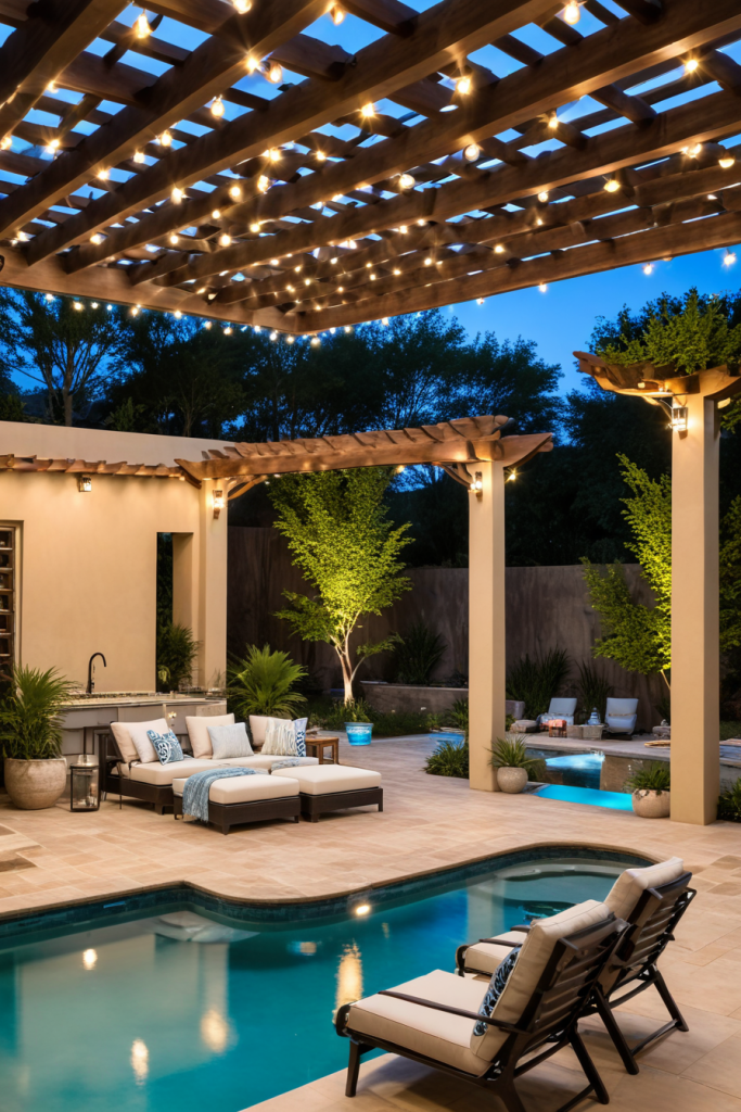 Changing Link A poolside entertaining area offers the best space for summer gatherings. Set up lounge chairs, daybeds, or even some cabanas to provide a resort-style atmosphere. There’s also an umbrella or a pergola for some shading, and a poolside bar with a mini fridge to keep the drinks cold. Add some waterproof speakers and floating lights to boost the vibe, and your backyard pool becomes the perfect getaway.