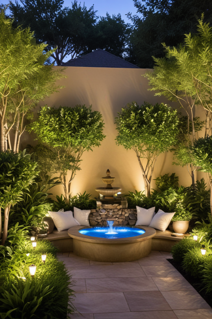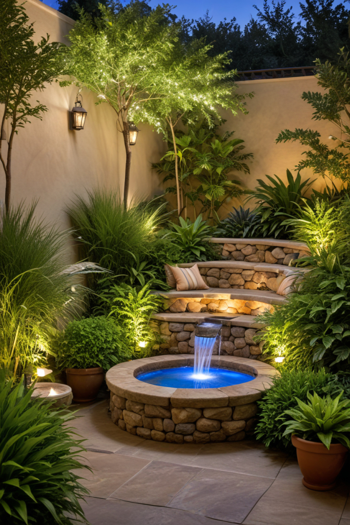 Having a hot tub or spa section obviously upgrades your outdoor space. Add wooden decking, privacy screens, and LED lights for a finished look. You may also provide floating drink trays, soft towels, and built-in seating for extra comfort. A fire pit and waterfall features next to it will definitely add to the spa-like feel of the area.