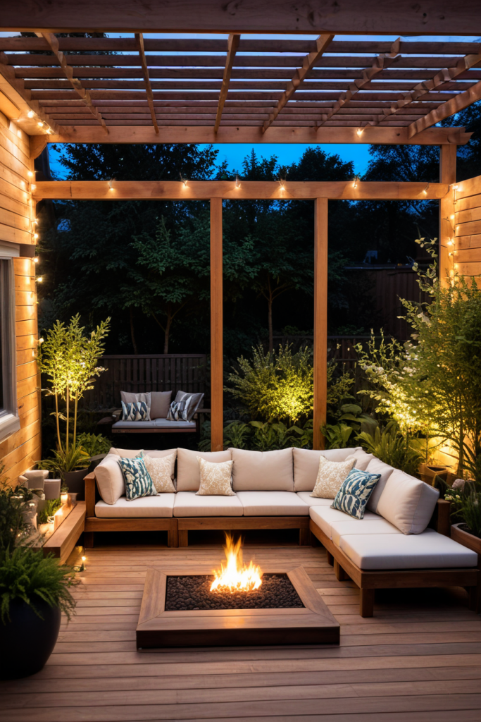 Proper outdoor lighting can enhance your backyard’s beauty and transform the space into a magical one during the night. Install string lights over seating areas, solar-powered path lights, and LED uplighting on trees or walls for depth and warmth. To add a dash of beauty to the decor, fire torches, lanterns, or smart lights which change color can be added to set the right mood on various occasions.