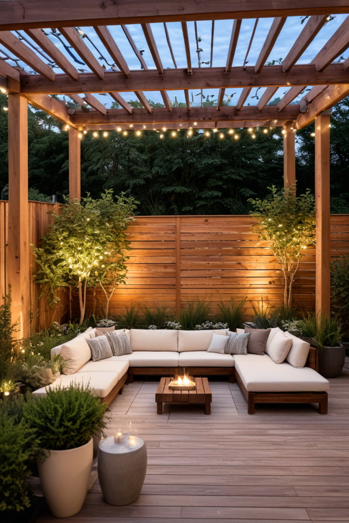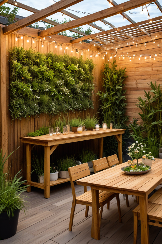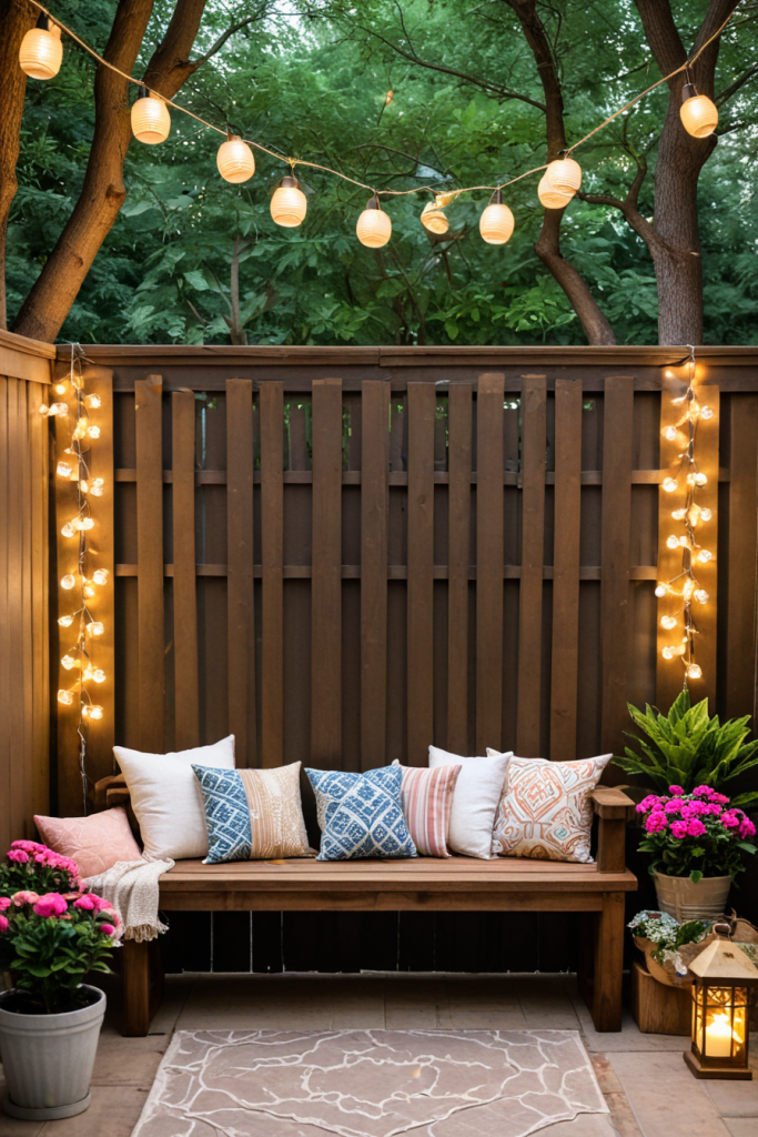 Installing privacy screens or partitions helps in defining an area for outdoor socializing, making it perfect for entertaining. Spaces can be defined and unwanted views blocked with the use of wooden slatted panels, lattice screens with climbing vines, and outdoor curtains Bamboo partitions and trellises add a natural touch while frosted glass dividers provide a more modern look. Enhancing privacy and the ambiance can be achieved by layering potted plants or vertical hanging gardens.