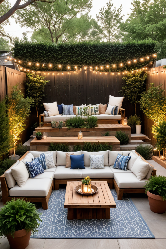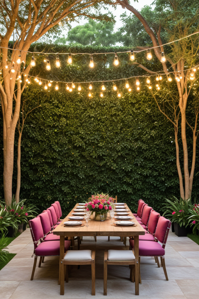 With the right techniques, even a tiny backyard or balcony can be transformed into a classy entertainment area. Use wall-mounted bars, foldable furniture, and bistro tables to maximize space. String lights or lanterns also make for a great intimate mood. For plants, go for hanging planters or vertical gardens to keep things clean and spacious. Add a mini water fountain or a corner fire pit for an extra touch of magic.