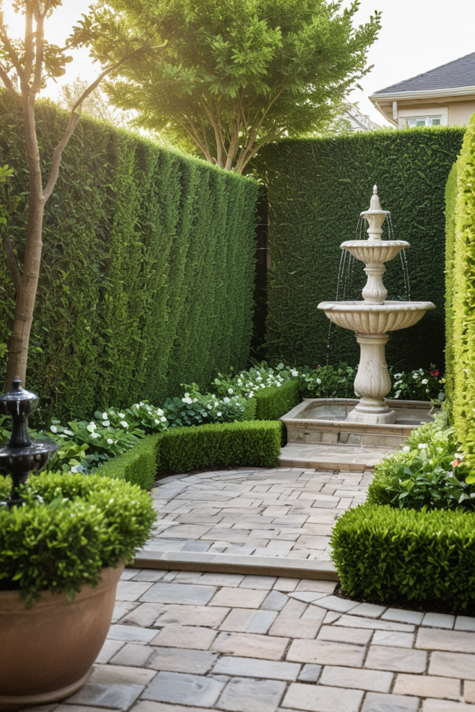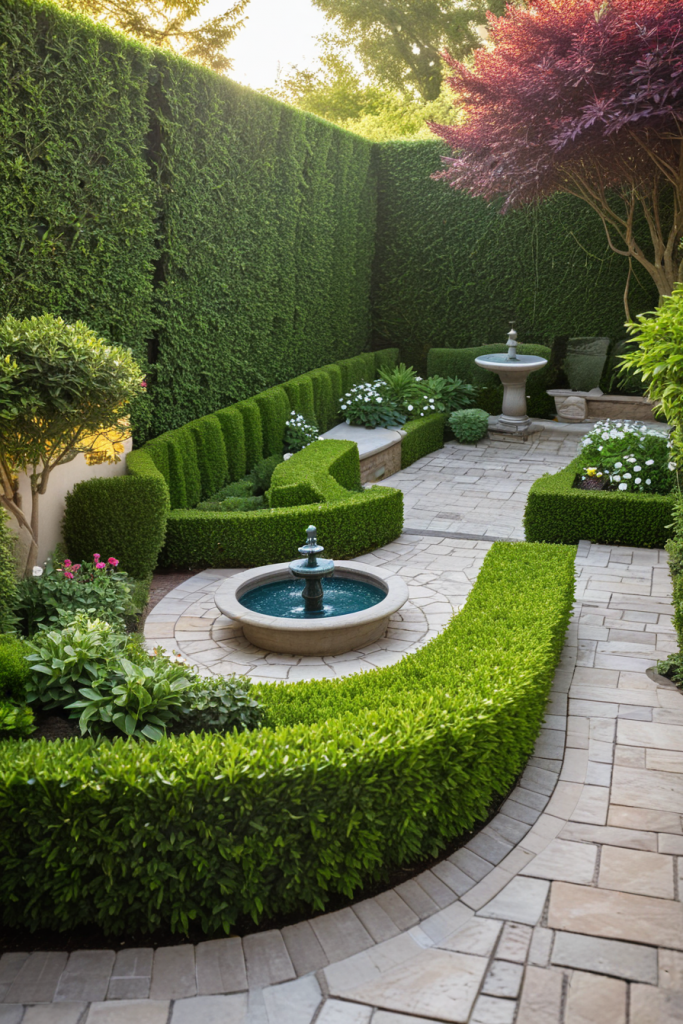 A peaceful place to rest is provided by a garden sitting area in the backyard. For comfort, use suspended egg chairs, woven hammocks, or cushioned seats. Soften the area’s borders by surrounding it with beautiful blooming flowers, climbing ivy, or bamboo dividers. Relaxation is made better with the addition of soft fairy lights and a small fountain. These features make it an even better resting area.