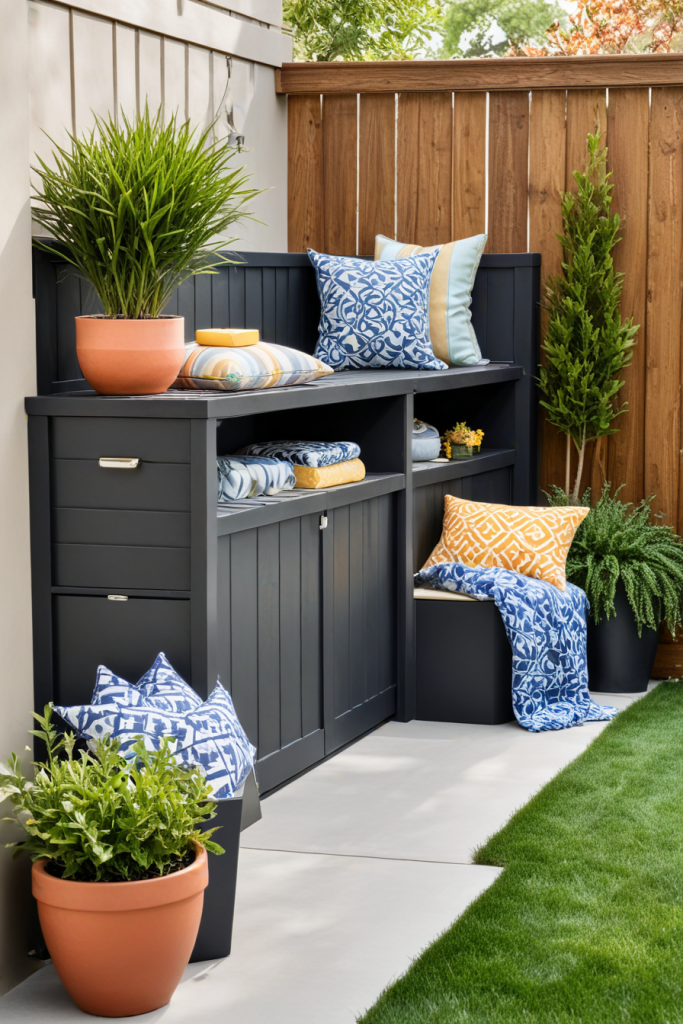 Having an organized outdoor area helps in achieving a neater look. Purchase storage benches, durable outdoor deck boxes, or outdoor cabinets to conveniently store cushions, blankets, and grilling equipment. In addition, wall-mounted shelves or a freestanding storage shed can accommodate larger items. Instead of bulky containers, choose wicker baskets or hidden compartments for quick access to everyday essentials while still keeping them out of sight.