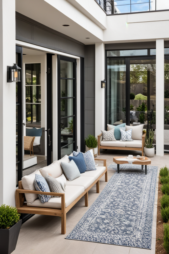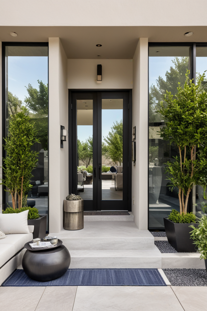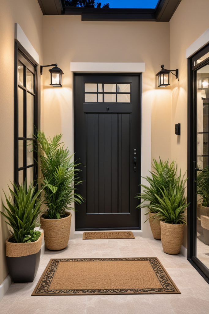 A statement door mat can be a subtly and putfully impactful detail that sets the tone for your home. Bold patterns, vibrant colors or unique textures should be selected that not only welcome guests in but also serves as a focal point within your Outdoor Entryway Ideas. This accessory serves to tie the whole design together by adding personality and style right at the doorstep.