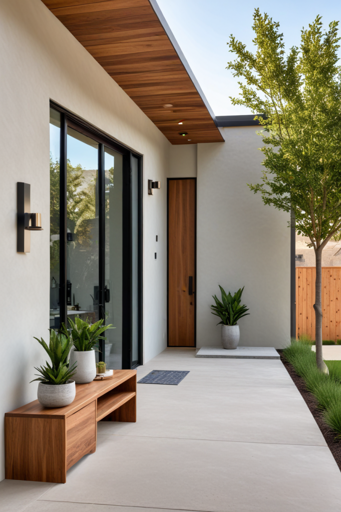 The last pieces of the puzzle bring everything together, elevating the quality of the outdoor entrance to a completely new level. The space can be transformed with the use of accessories such as stylish doormats, decorative planters, and ambient lighting which act as details to the Outdoor Entryway Ideas. These accent pieces, all serving a purpose, are an integral part of the initial concept of the design allowing the entrance to be captivating and functional as well.