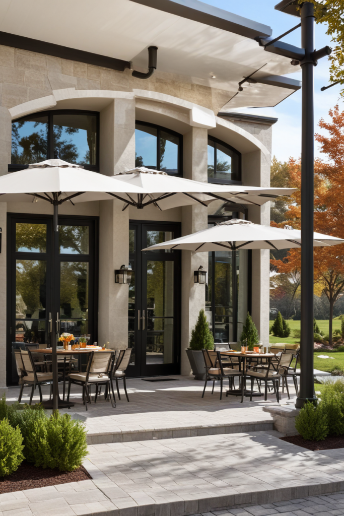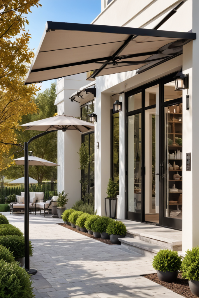 Canopies and umbrellas designed for all seasons offer a unique blend of aesthetic appeal and functional protection to your outdoor exit. These structures which are built to withstand different types of weather patterns provide shade during summer and protect against harsh weather conditions while acting as a modern design feature to your home’s external design.