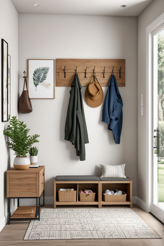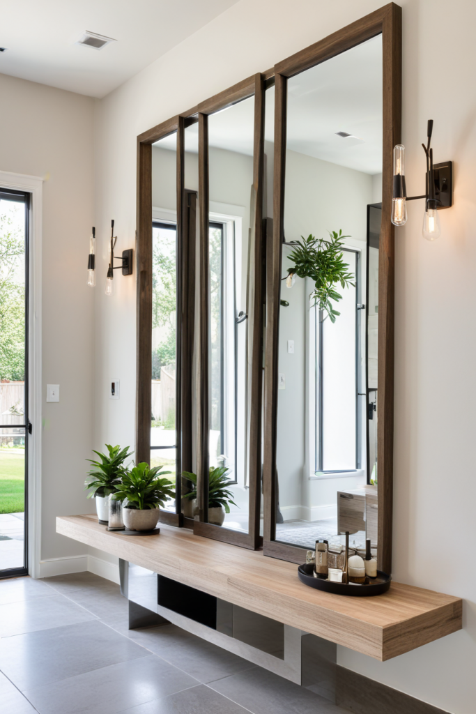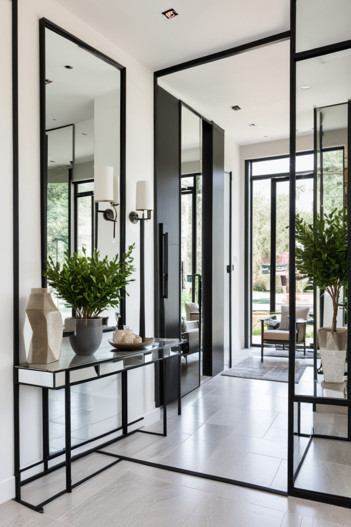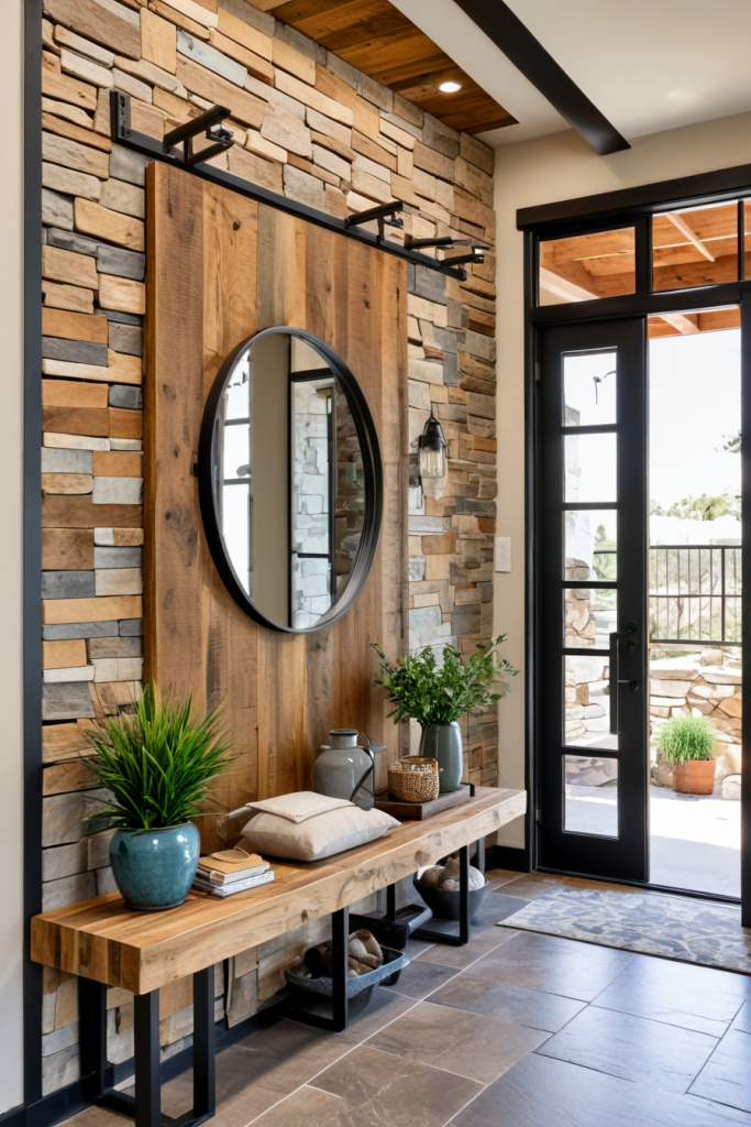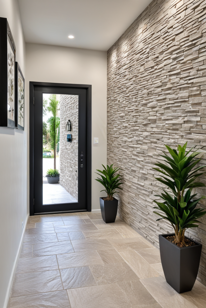 Introducing natural components into your entryway, like wooden chandeliers, stone decorations, and green plants, promotes warmth and serenity. Using this method fosters a relaxed and welcoming environment that highlights sustainable development while still adding interest and dimension to the decor. The touch of nature boosts the aesthetics and the character of the space.