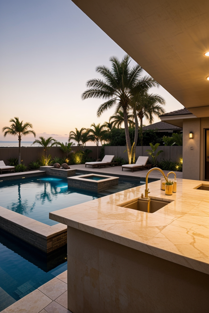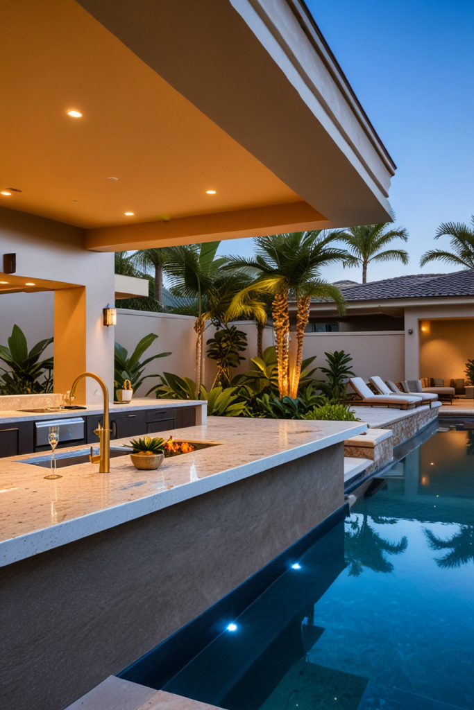Sophisticated Poolside Outdoor Kitchen and Bar Layouts