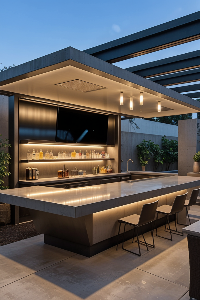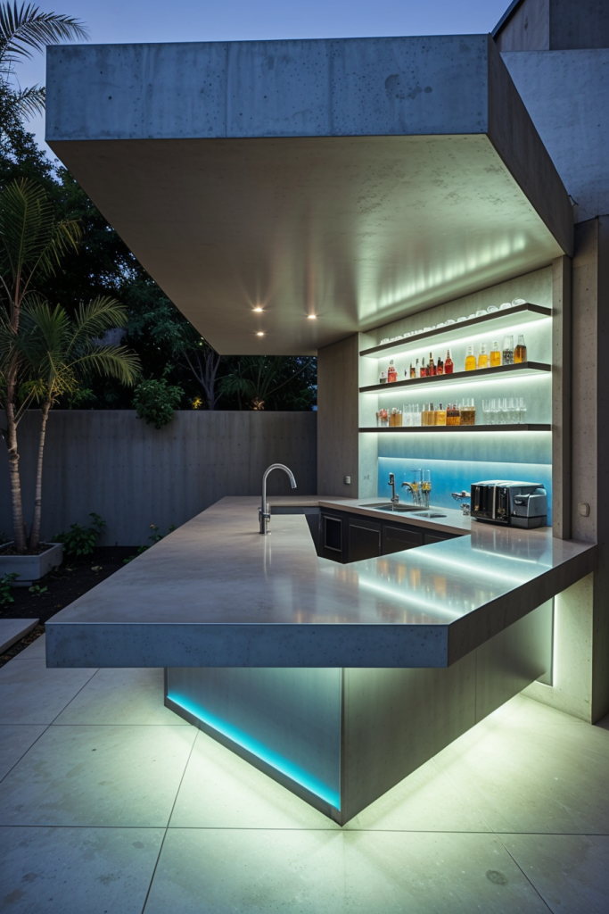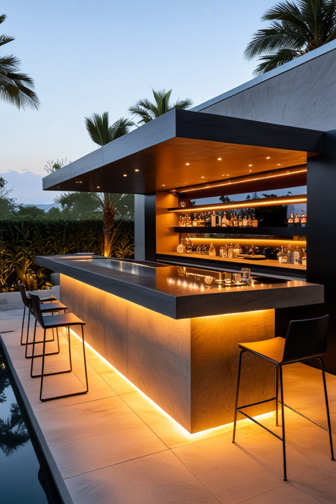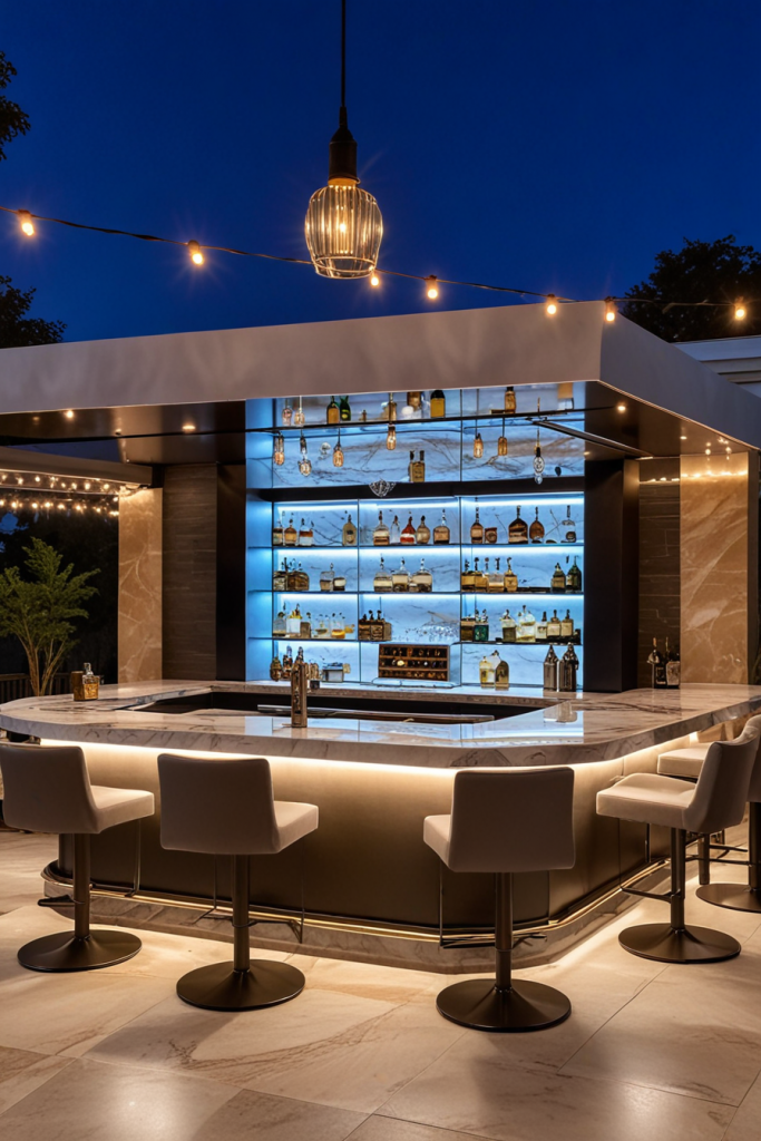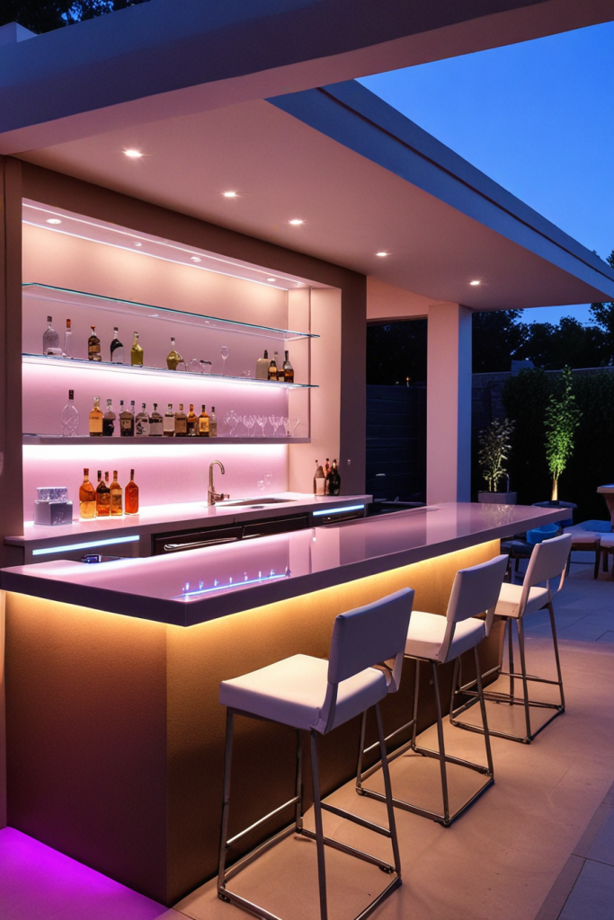 Chic Outdoor Bar with Integrated LED Lighting and Mood Enhancements