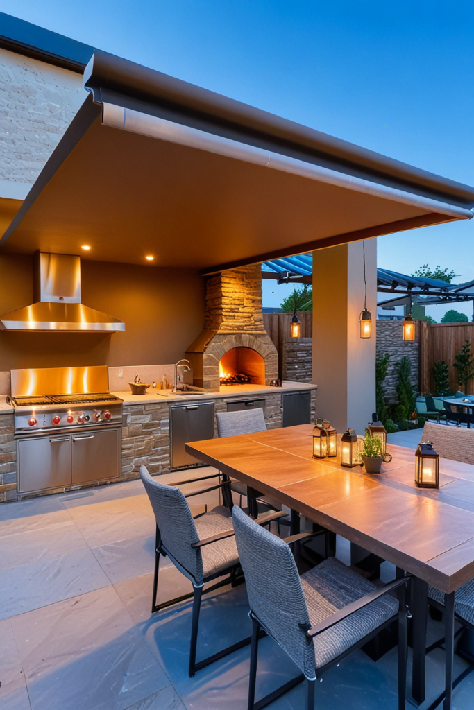 Outdoor Kitchen with a Retractable Roof for Year-Round Comfort