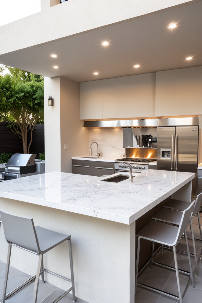 High-End Marble Outdoor Kitchen for a Sophisticated Look