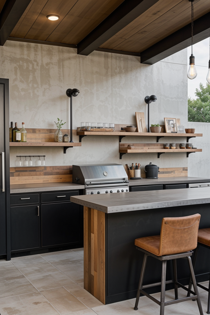 Industrial-Chic Outdoor Kitchen and Bar with Metal and Wood Accents