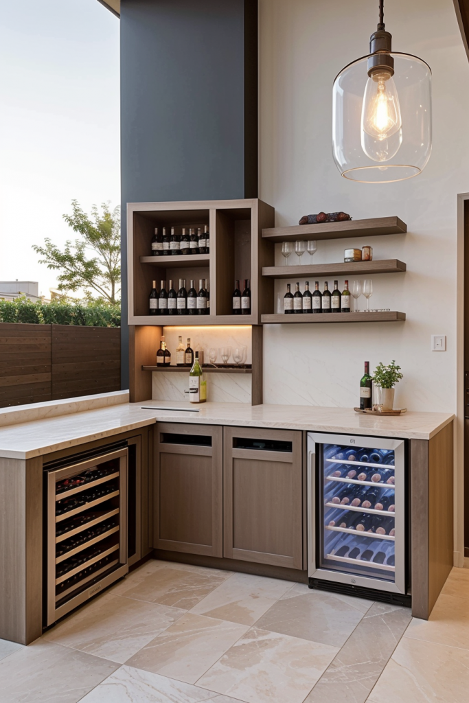 Built-In Outdoor Bar with Custom Wine Storage and Cooling Systems