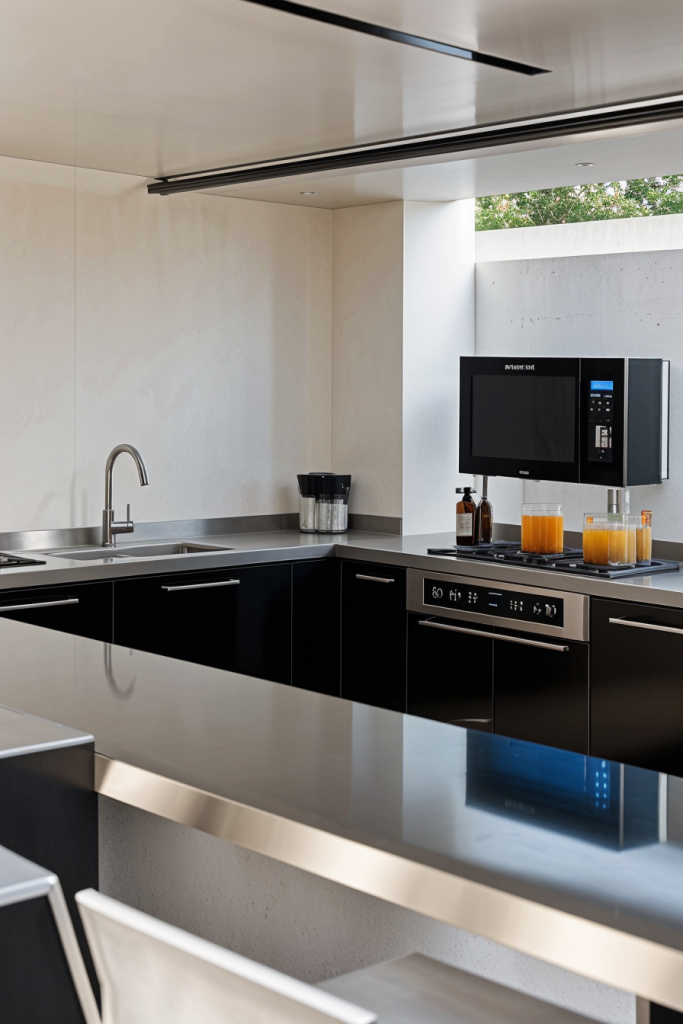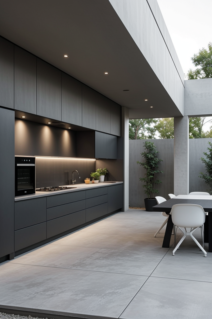 Minimalist Outdoor Kitchen with Clean Lines and Neutral Tones