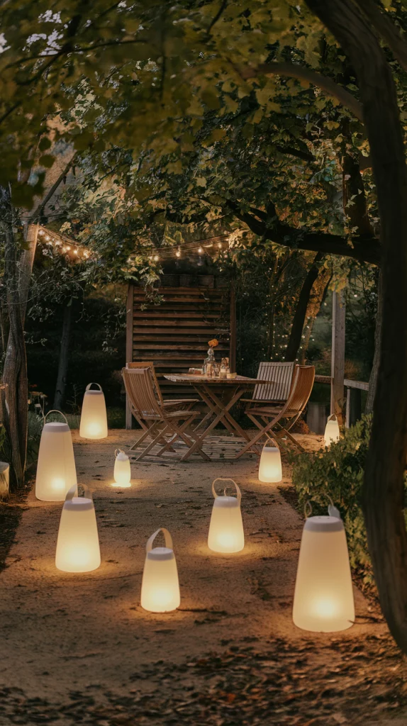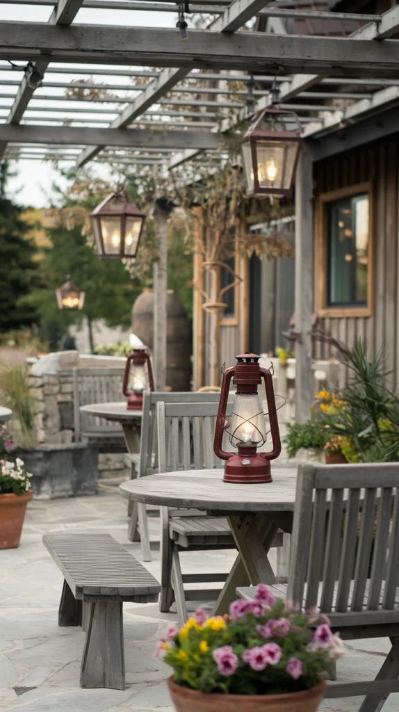 Rustic lanterns bring timeless charm to patios, pathways, and garden areas. Opt for lanterns with weathered metal or wood finishes paired with vintage-style bulbs. Cluster them on tables, hang them from pergolas, or line them along walkways for a cozy glow.