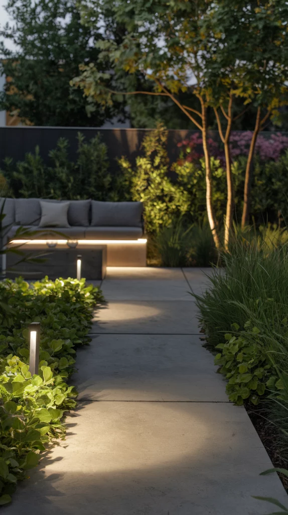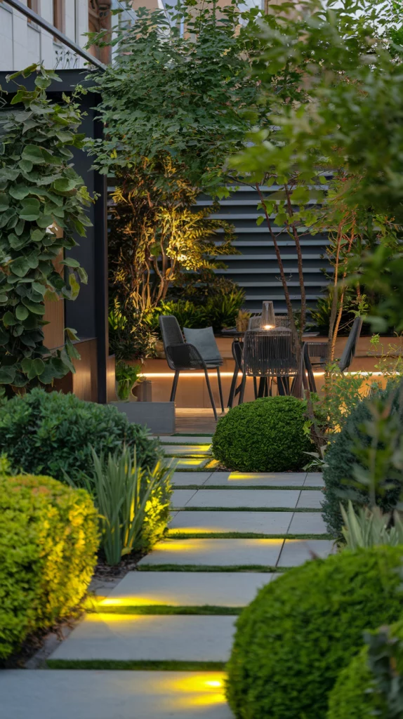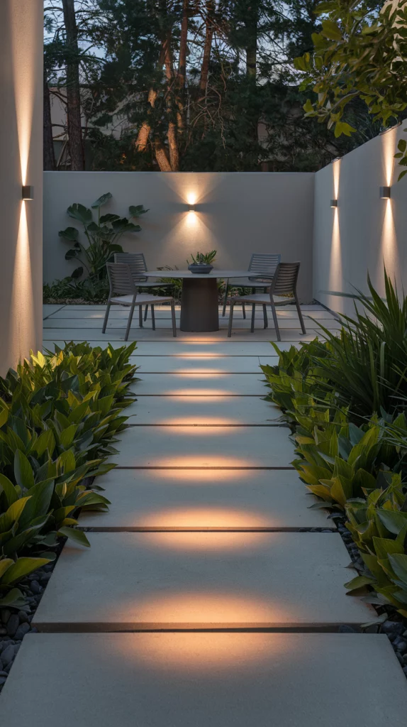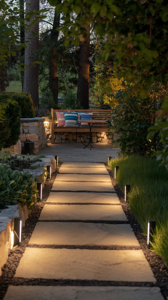 Pathway lighting is both functional and decorative, ensuring safe navigation while adding charm to your outdoor areas. Low-voltage LED lights or solar-powered stakes work beautifully to line walkways. For a modern twist, stagger the lights on either side of the path to create visual interest.