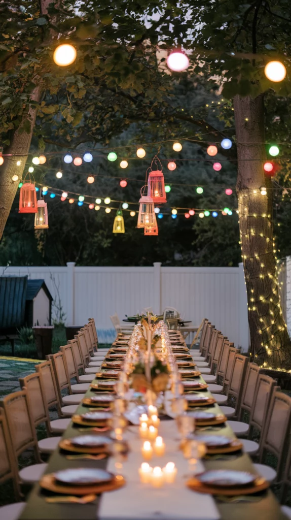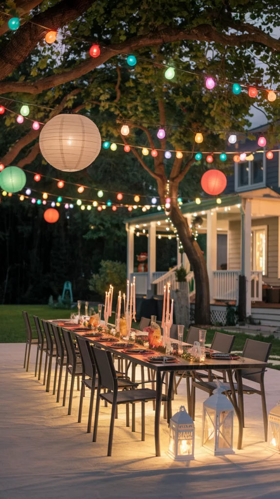 Festive outdoor lighting brings a celebratory feel to any event, from birthdays to holidays. Incorporate string lights, lanterns, and LED candles to create a magical atmosphere. Use colorful lights or themed fixtures, such as star-shaped bulbs or decorative projectors, to match the occasion.