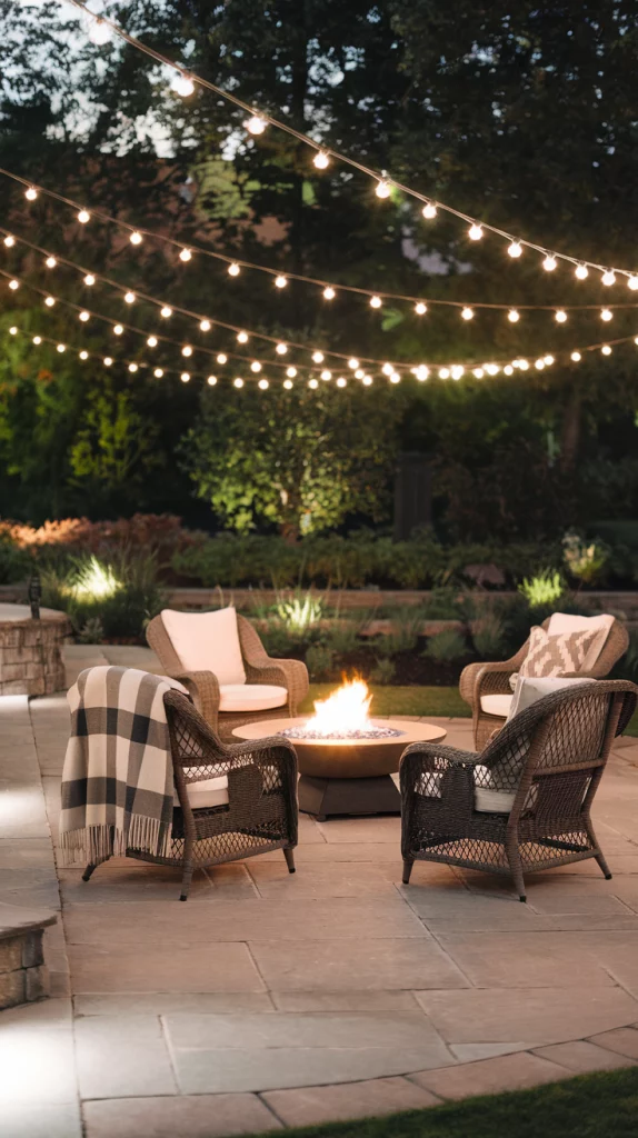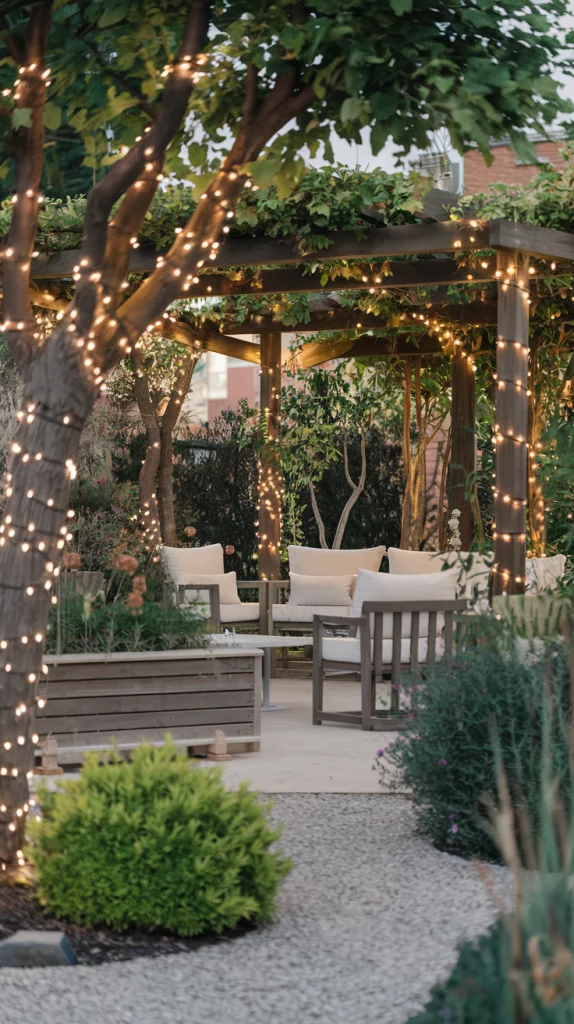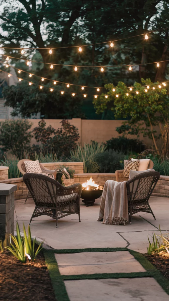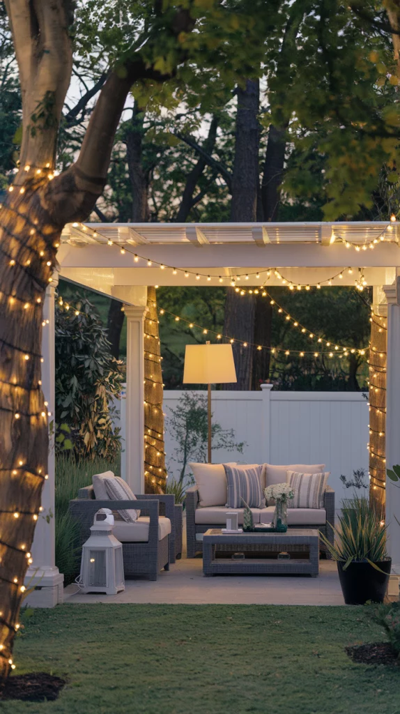 String lights add a whimsical and inviting charm to backyard spaces. Hang them above seating areas, weave them into pergolas, or drape them along fences for a cozy atmosphere. Warm white bulbs create a classic look, while multicolored lights bring a playful vibe.