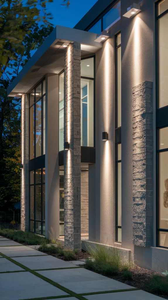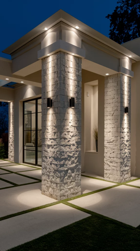 Accent lighting is a sophisticated way to highlight the unique architectural features of your home. Use spotlights or wall-mounted fixtures to emphasize elements like columns, textured walls, or decorative trims. Warm white lights create a soft glow, while cool-toned lights offer a dramatic and modern effect.