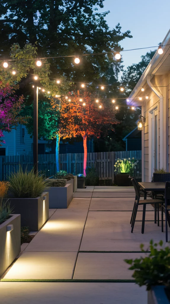 Customizable outdoor lighting allows you to create a truly personalized atmosphere. Use smart lighting systems to adjust brightness, colors, and effects based on the occasion. Combine string lights, spotlights, and decorative fixtures to craft a layered design.