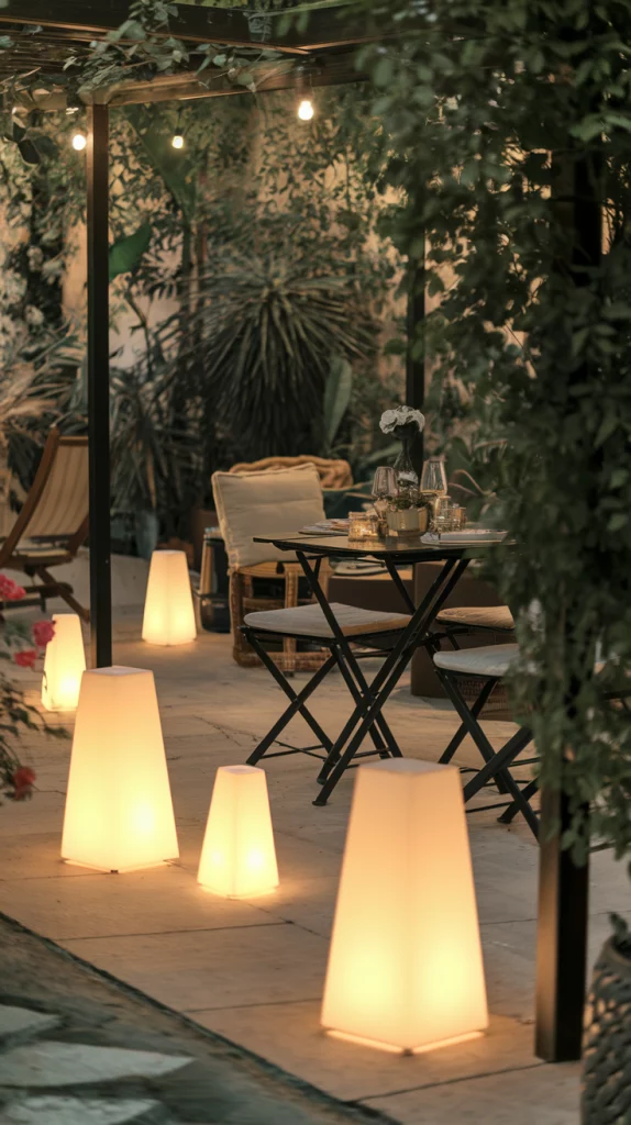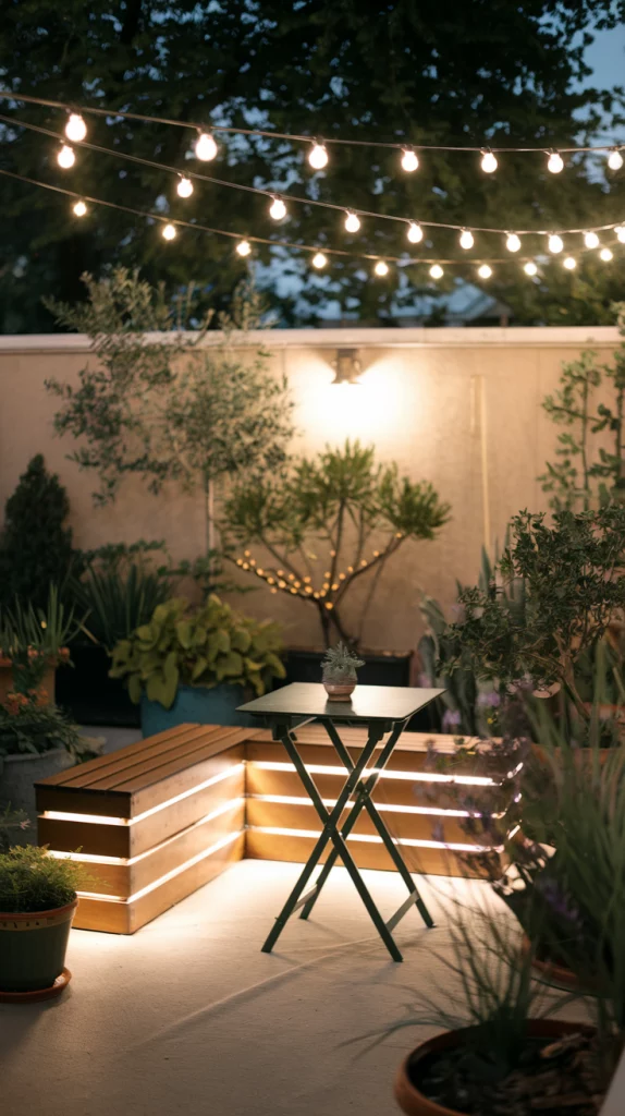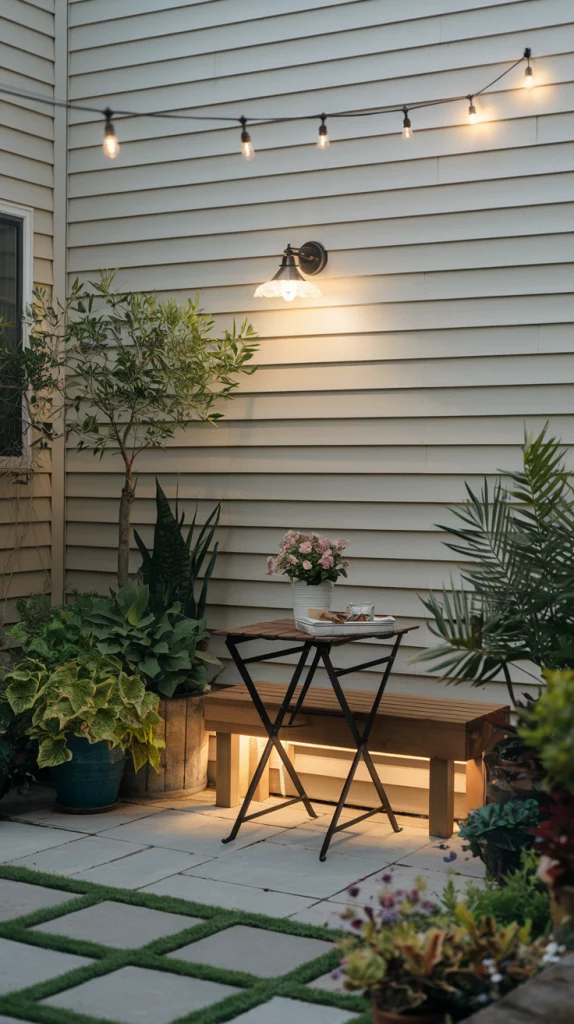 When space is limited, choosing versatile lighting solutions can make a big impact. Use vertical elements like wall-mounted sconces or string lights to save ground space while enhancing ambiance. Compact LED strip lights under seating or solar-powered stake lights in planters can add depth without overcrowding the area.