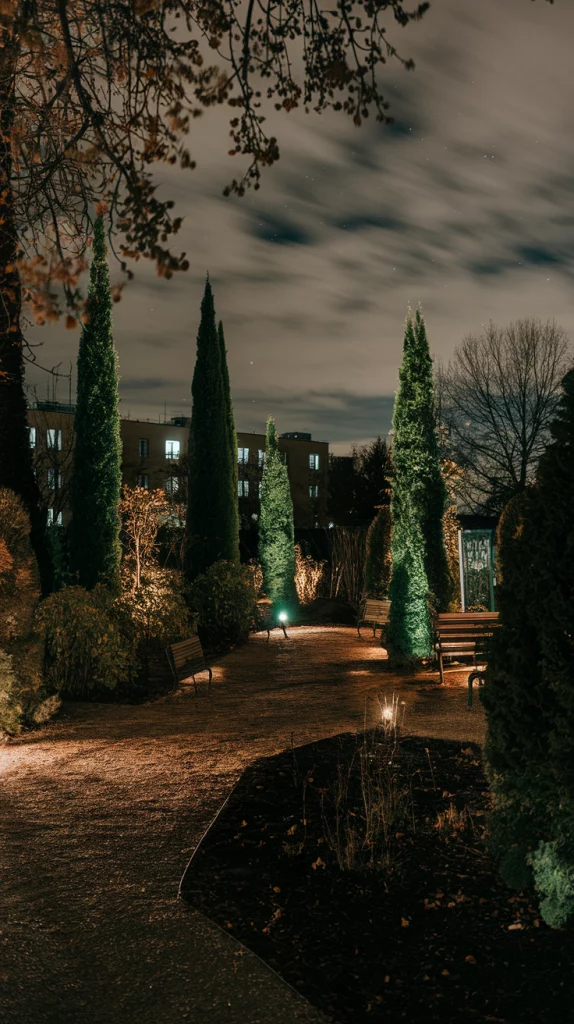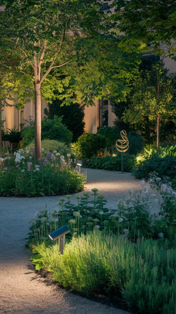 Spotlights are a fantastic way to showcase specific garden features, such as trees, shrubs, or sculptures. Place adjustable LED spotlights at the base of plants to create dramatic shadows and highlights. Combine them with pathway lights for a layered lighting effect.