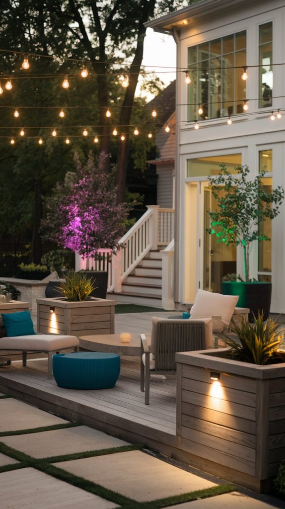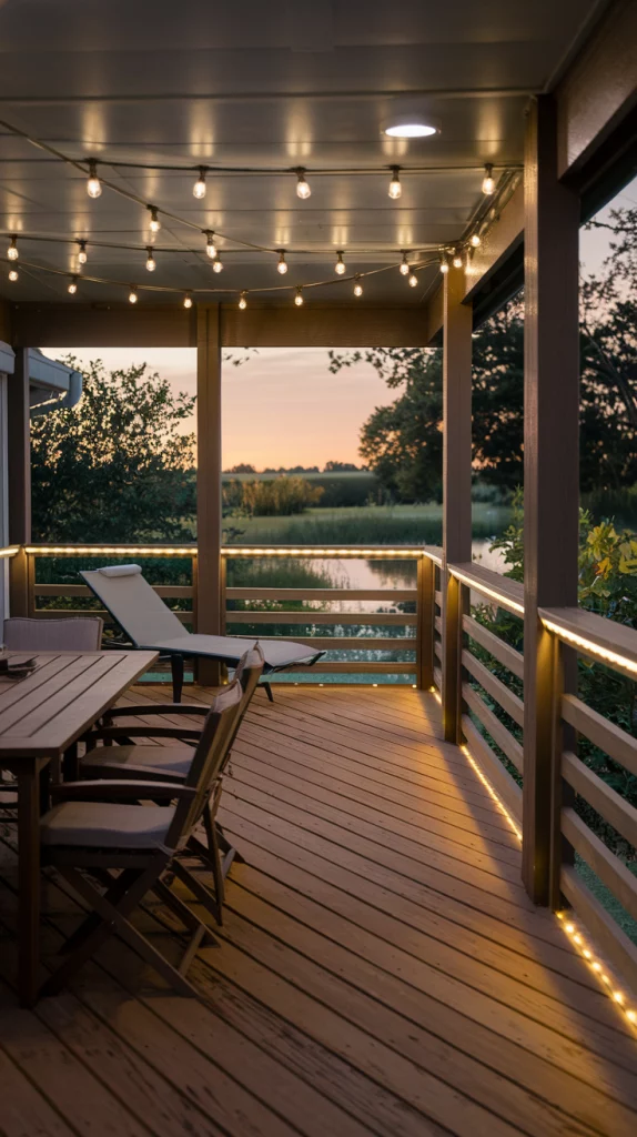 Patios and decks become more inviting with the right lighting design. Consider recessed lights for a modern, clean look or overhead string lights for a casual, cozy vibe. Add LED strips under deck railings or furniture for soft, ambient lighting.