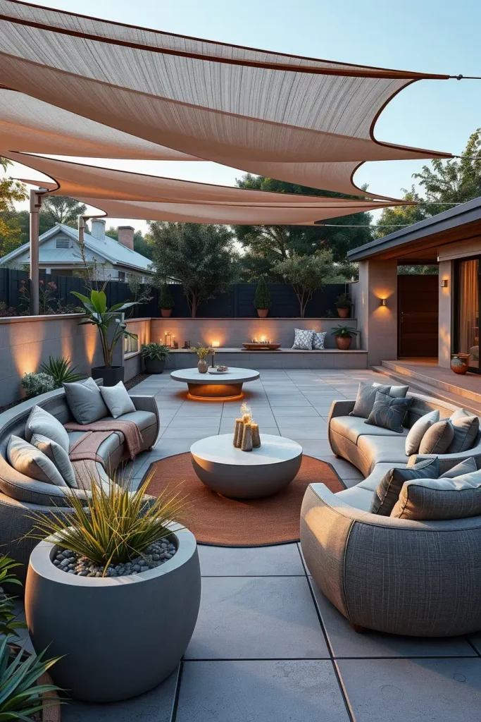 In 2026, I see shade structures becoming architectural highlights rather than purely functional additions. In a creative outdoor relaxing area, layered fabric installations, tensile canopies, and sculptural pergolas define the mood of the entire space. I often design these structures to create filtered light effects, allowing sunlight to move gently across the seating areas throughout the day. This approach not only protects from heat but also enhances the sensory experience of the outdoor relaxing area 2026.