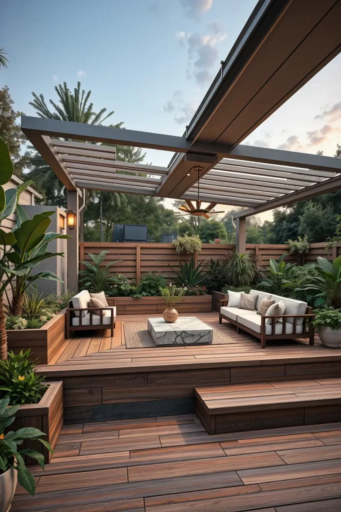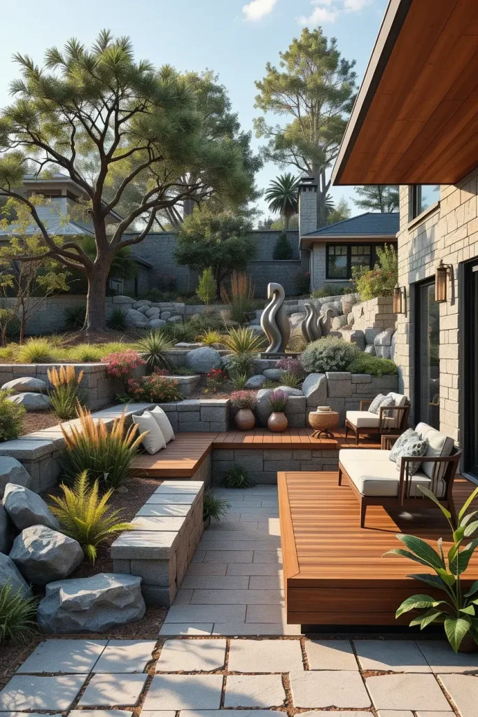 Personally, I find multi-level layouts to be one of the most creative ways to maximize medium-sized yards. According to many American landscape architects, layered spaces improve functionality and perceived size. I’ve implemented this strategy in compact suburban properties with impressive results.