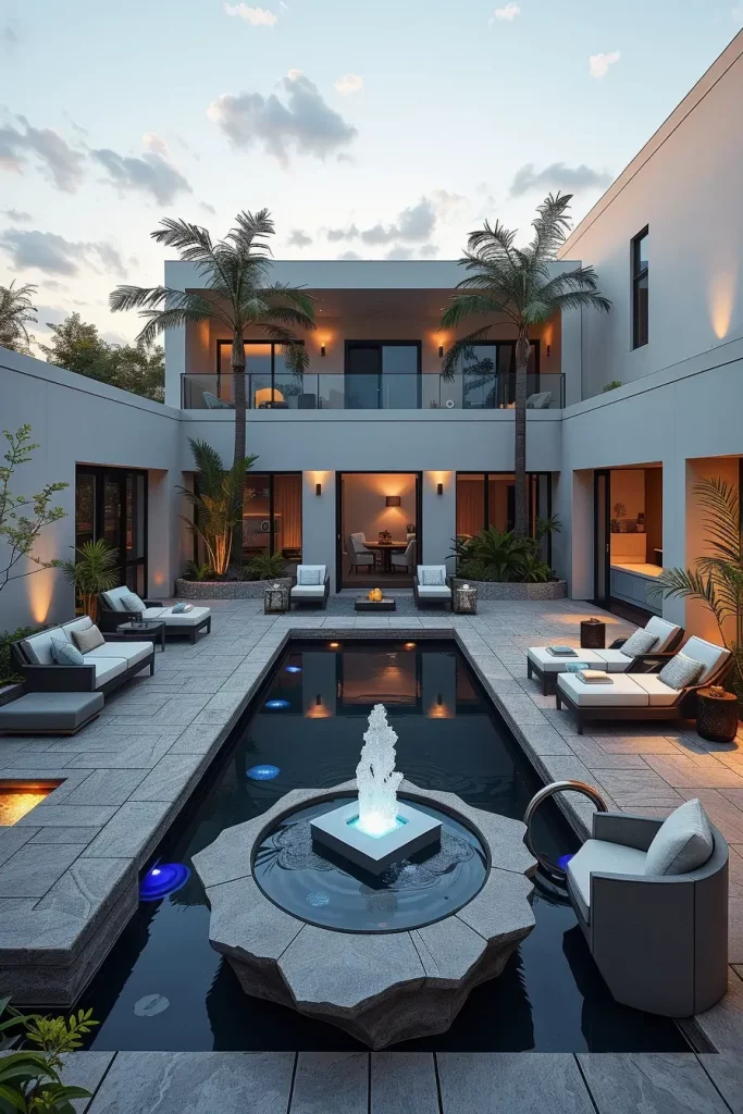 In my experience, clients are often surprised by how much a shallow reflective pool changes the perception of scale and tranquility. Architectural Digest has frequently highlighted the importance of sensory design in outdoor living, and I fully agree. Water introduces sound, movement, and reflection, making the space dynamic yet soothing. Personally, I always ensure that the water feature aligns with the overall architectural language of the house rather than appearing decorative without purpose.
