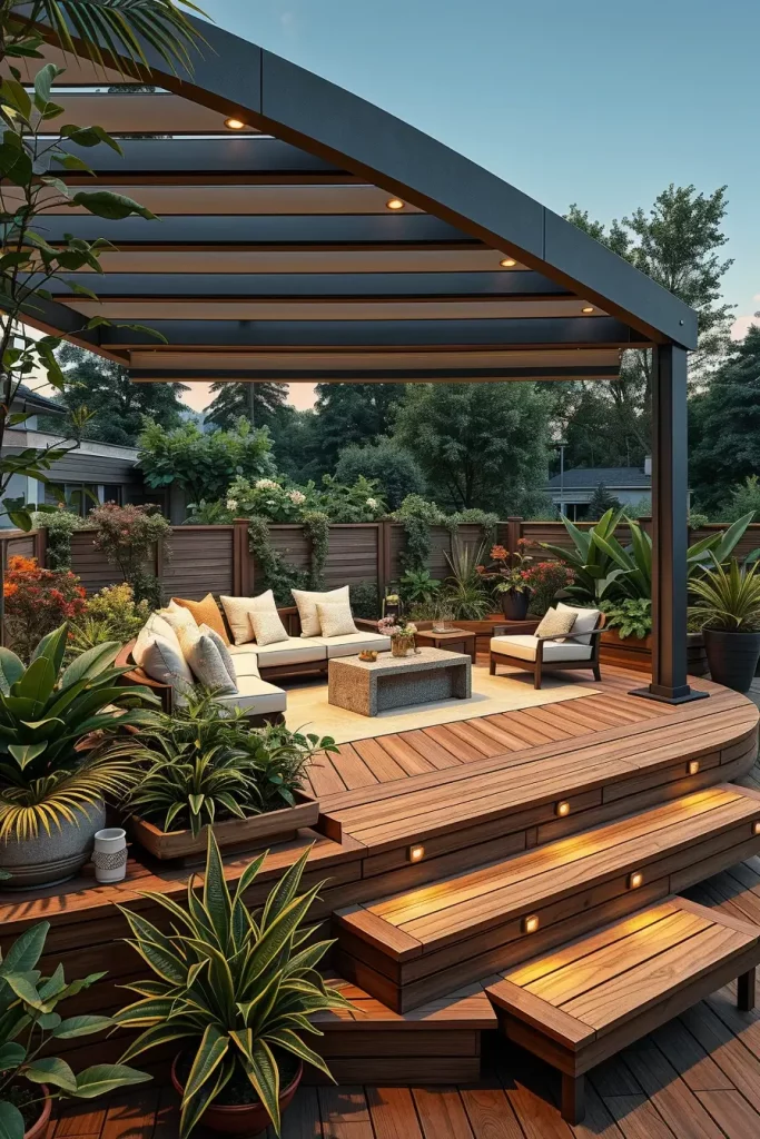 From my experience, elevated lounges encourage people to gather and linger longer. Designers frequently note in Architectural Digest that creating vertical layers in landscape design adds dimension and psychological comfort. I agree completely. When I add layered planting and soft lighting, the space immediately feels more immersive and designer in character.